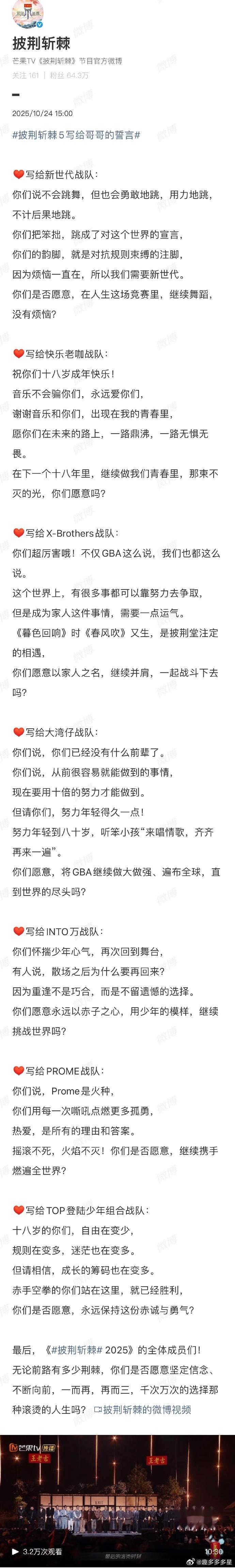披荆斩棘5写给哥哥的誓言披荆斩棘2025总决赛披荆斩棘2025总决赛 观众读信环节直接让我破大防!当代社畜的日常:上班摸鱼看综艺,结果被00后写的信整破防了