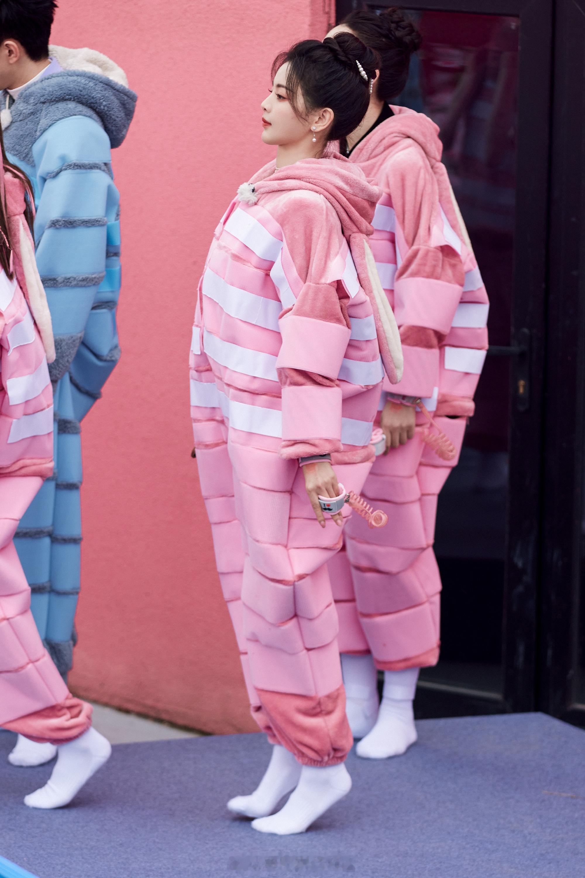 张天爱跟素人合影,胯真的好宽,大宅院似的