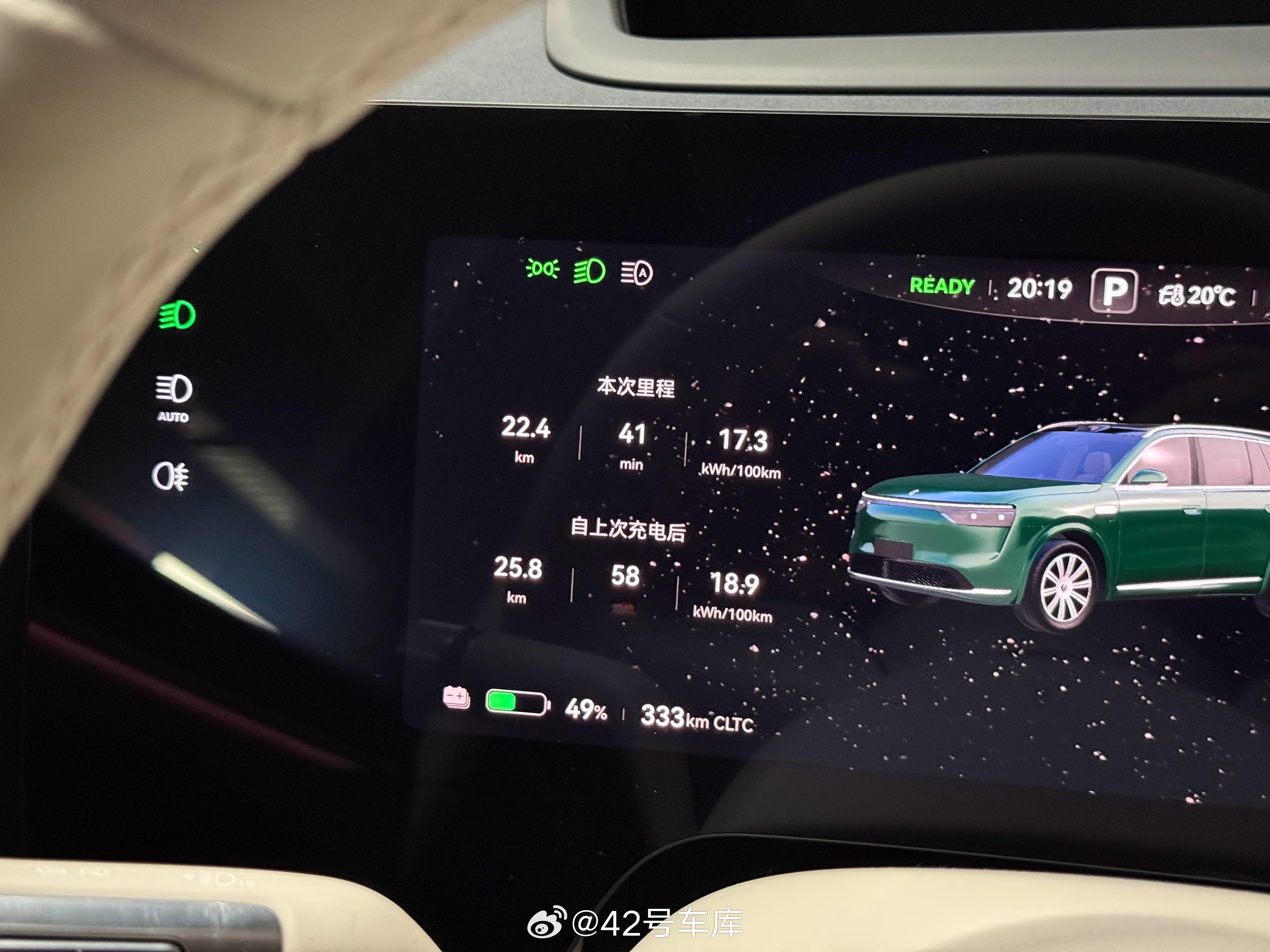 今天下班开的公司问界 M8 纯电,有城区也有高速,均速 33 km/h,表显能耗只有 17.3 kWh/100 km。