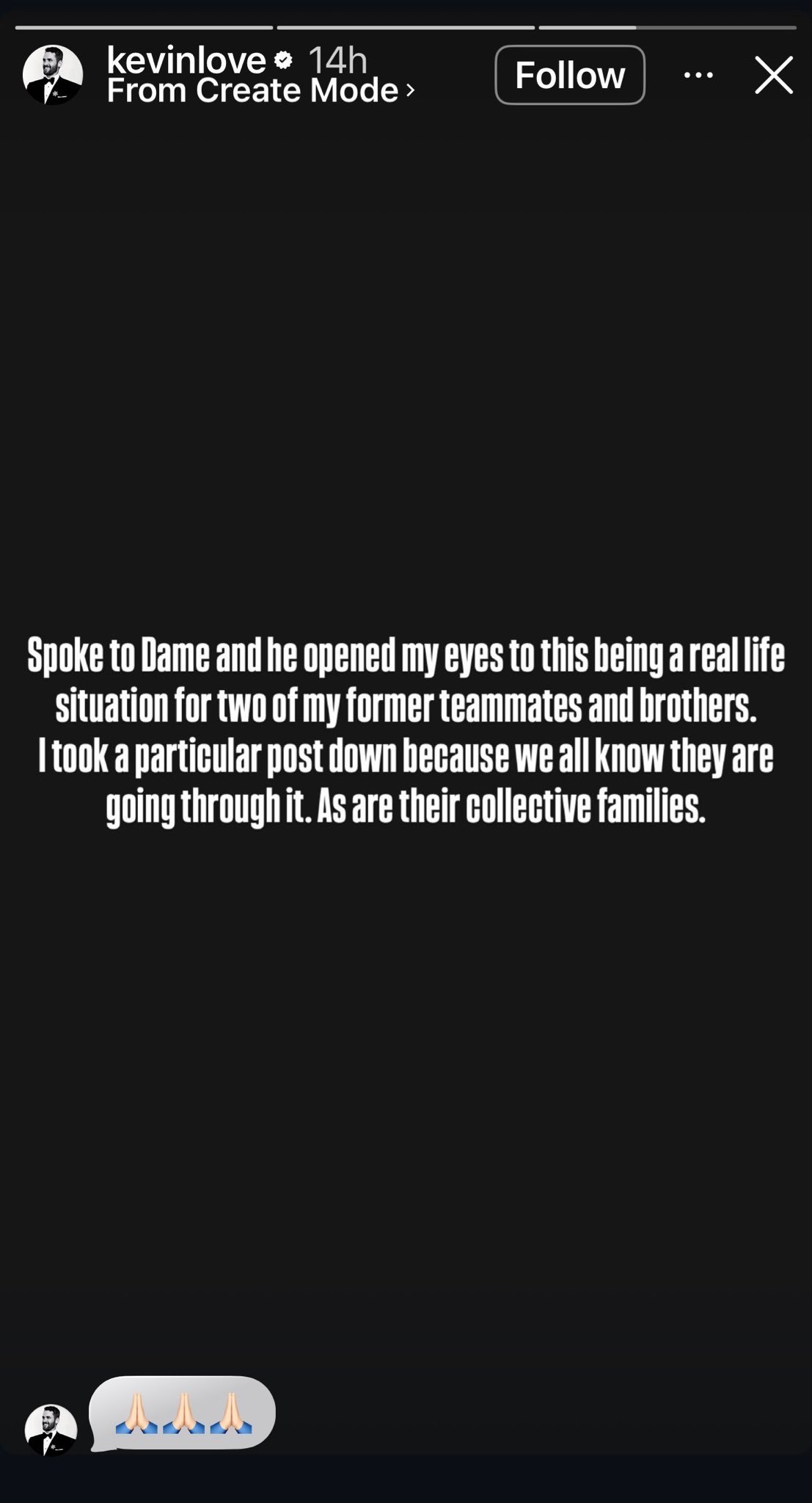 今天乐福删除了帖子,并写道:“与利拉德交流后,他让我意识到,这对于我的两位前队友兼兄弟来说,是一个真实的现实处境。我删除了帖子,因为我们都知道他们正在经历困境。他们的家人们也同样如此。”