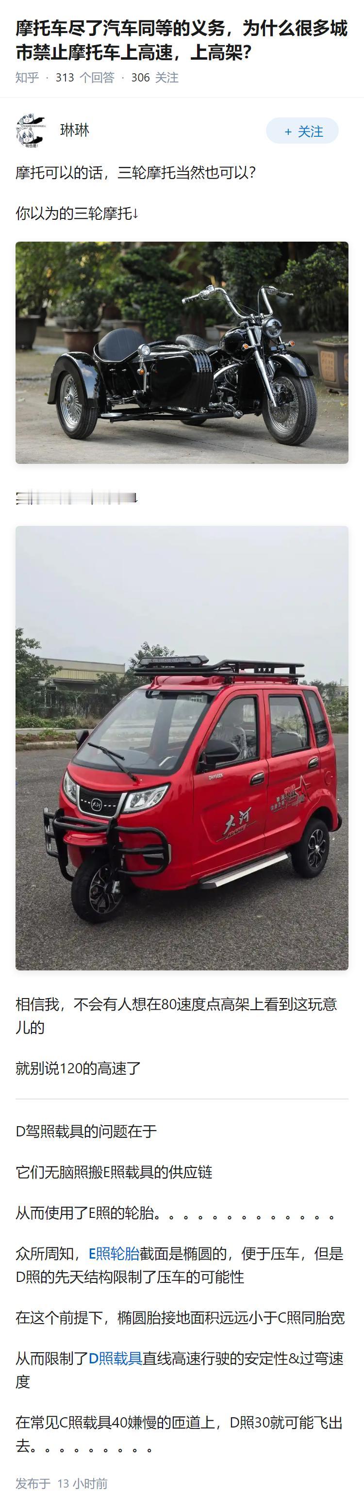 摩托车尽了汽车同等的义务,为什么很多城市禁止摩托车上高速,上高架?