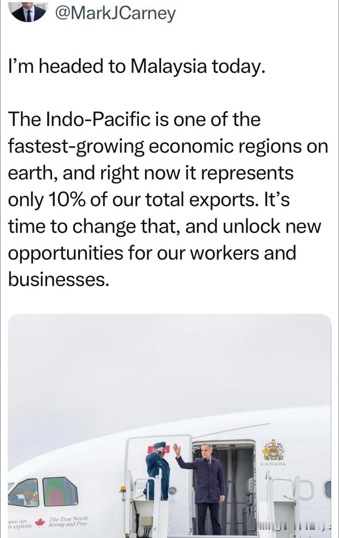 加拿大总理卡尼评“Trump终止贸易谈判”: 我们无法控制美国的贸易政策,必须认识到,这些政策已与此前几十年完全不同,现在的美国,是给所有贸易伙伴加关税…我们能做的,是发展新的伙伴关系…印太是经济发展最快的地区,目前只占我们总出口的10%,是时候寻求新的机会了 ​​​。 此前一天,Trump因加拿大在美国做广告,向民众宣传关税的错误,引起愤怒,宣布终止与加拿大的一切贸易谈判。 卡尼的评论,建立在事实的基础之上,没有任何错误。对加拿大来说今日的美国已经不是过去的美国,与其在美国的阴影下生存,不如开辟新的生存场景。东大和印太是经济快速发展,充满活力的地区,加拿大向东看,是明智选择。合作空间宽广,合作领域众多,非常适合加拿大。 这或许就是加拿大经济快速发展的最好的契机。