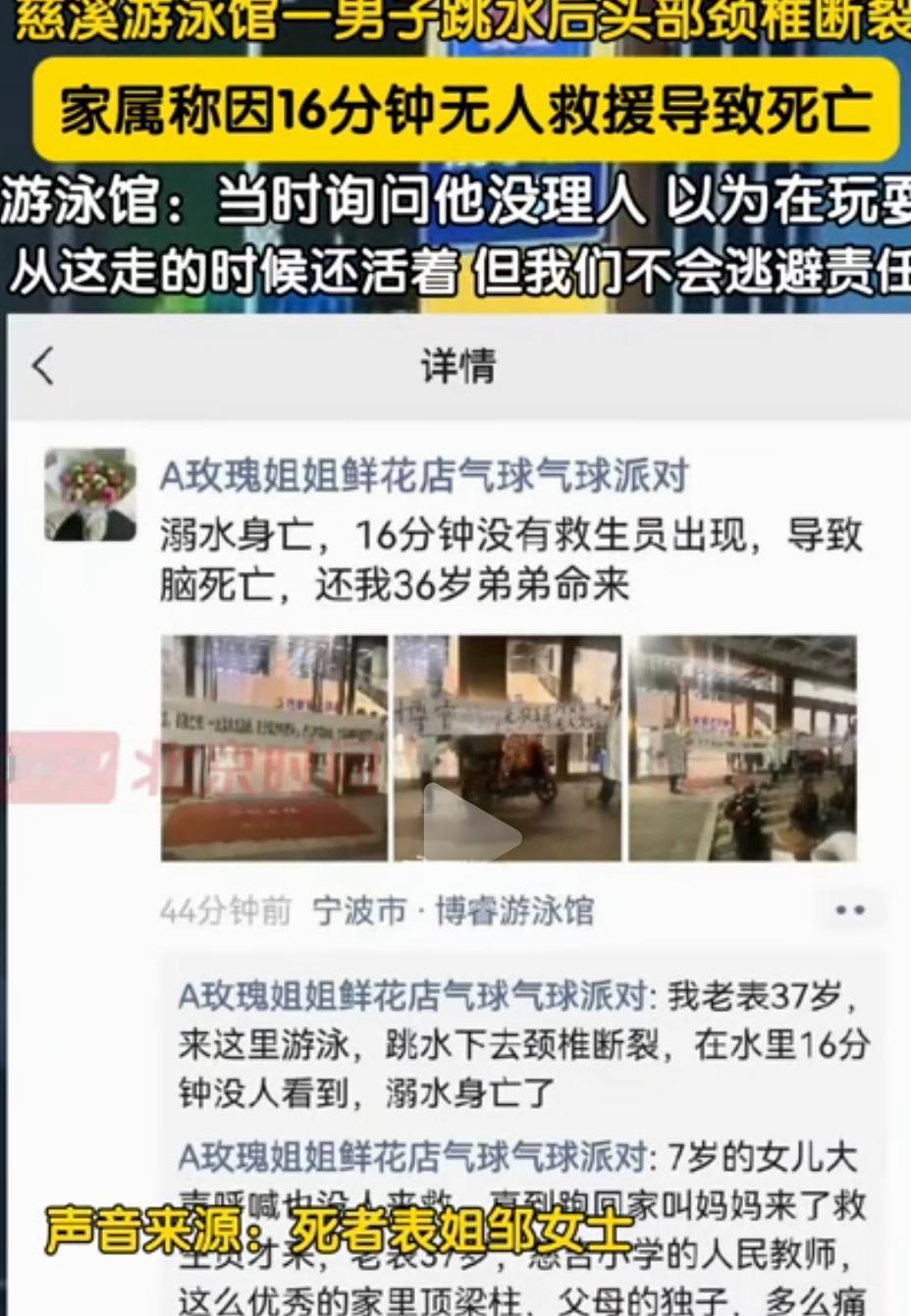 浙江宁波一男子,游泳馆跳水发生意外不幸离世,家属发声曝更多细节。 事发10月1