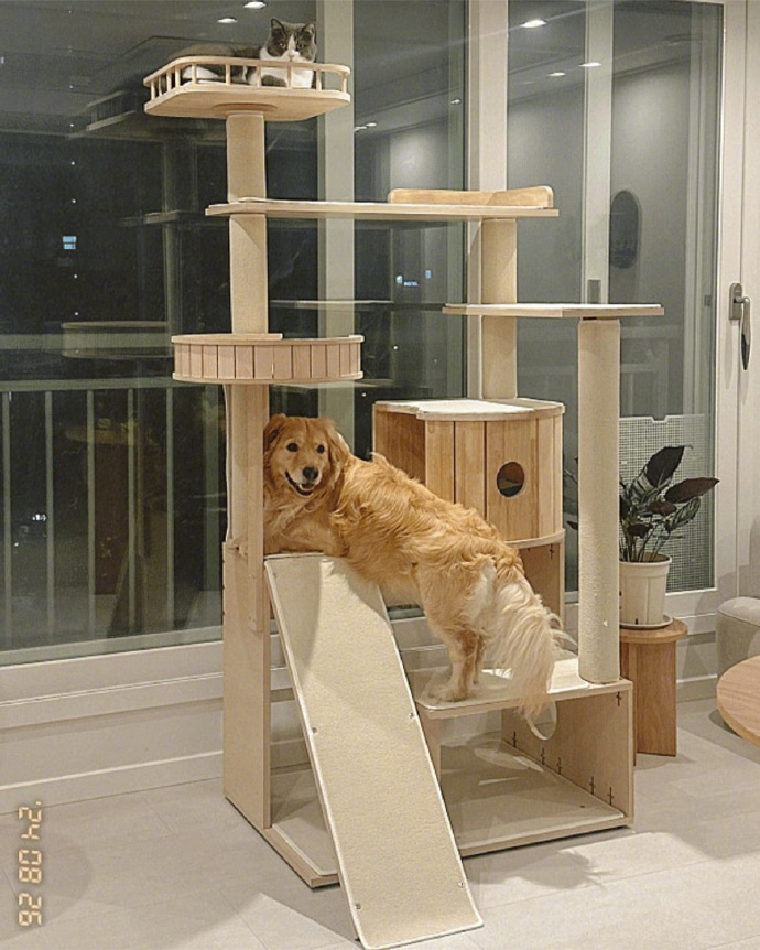 小狗总睡爬猫架上去 海外新鲜事 热点现场