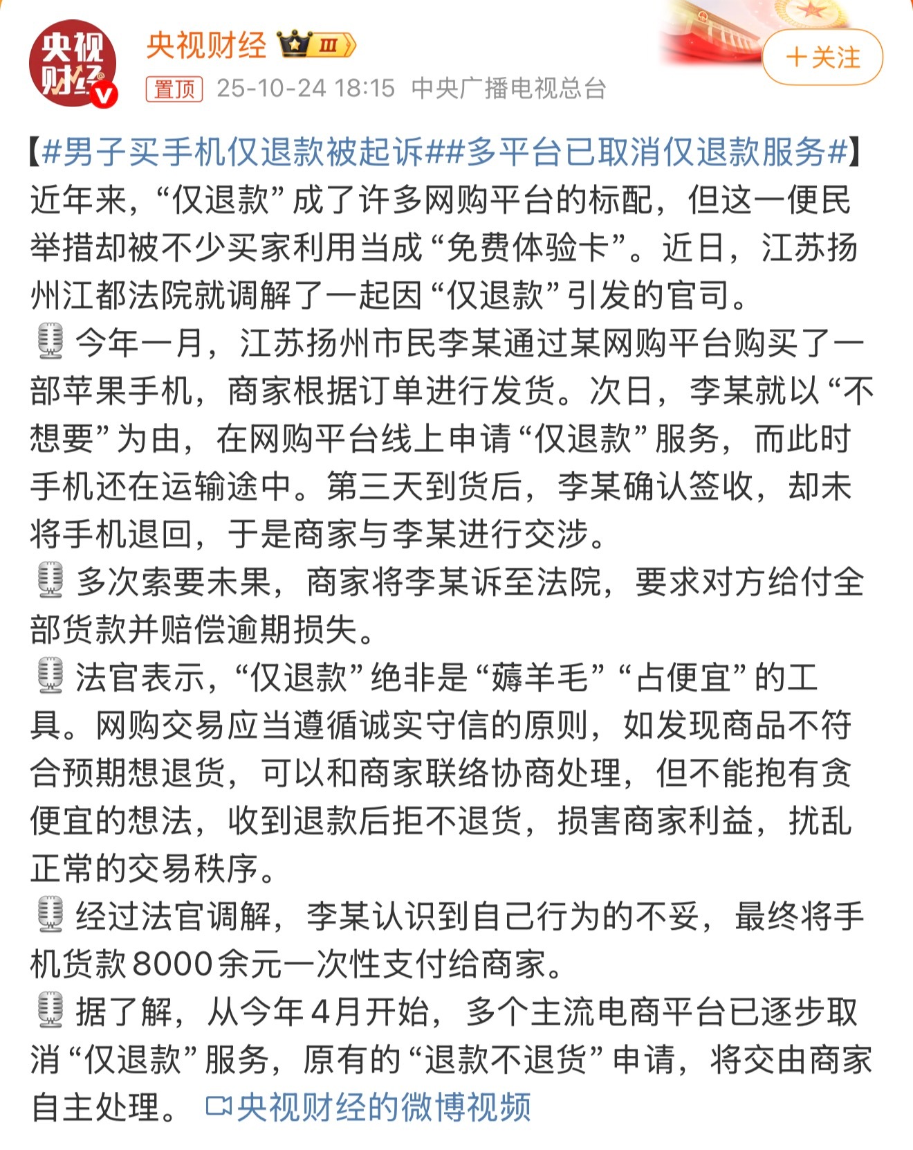 这人是多大脸啊,觉得8000多的东西也可以仅退款,还经调解才意识到行为不妥,真tm不要脸。