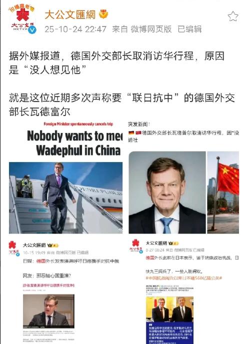 看到港媒说德国外长取消访华行程,因为中国没人想见他!   这次德国外长访华,本来