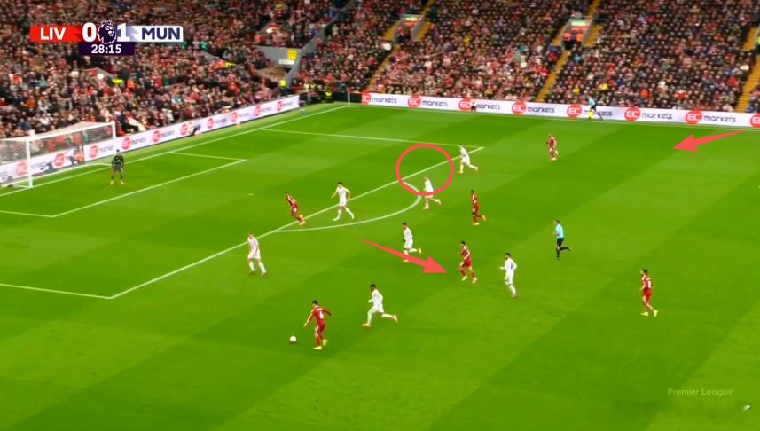 利物浦的442,最后萨拉赫的站位比在曼联更靠近禁区,这样的好处减少萨拉赫在边路的运营,并且能充分展示萨拉赫的组织能力和射门得分能力
