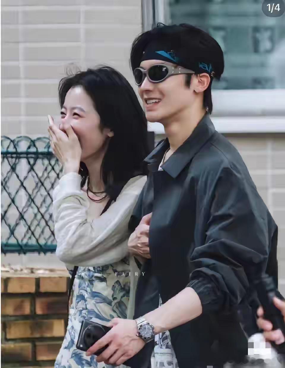 张天爱跟素人合影,胯真的好宽,大宅院似的