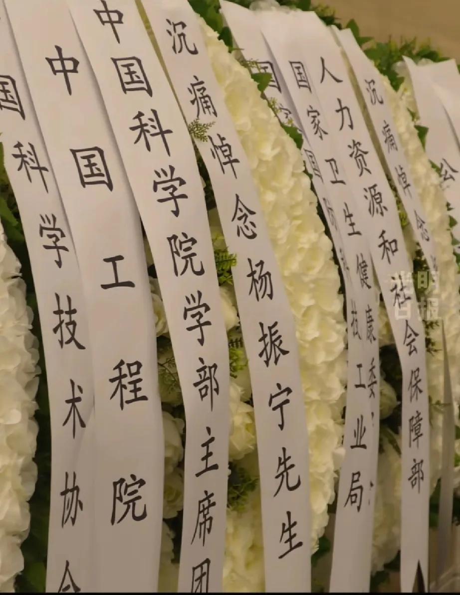 有谁注意到杨振宁丧礼上的挽联了吗?含金量太高了,看都是出自谁之手,充分证明了杨振宁的社会地位。 中工程院、公/安/部、科/技/部、人/资/和社/保/部、人民/政/府、还有各个大学等等,挽联和鲜花多到放不下,还有各界人士自发送别。 他身盖国旗,这是多高的荣誉啊。 其实有这样的荣誉,和他这一生的成就与贡献分不开,杨振宁先生的一生是功在世界,心在家国,他的成就世人共睹,但成果却留给了我们! 这种层面的送别表示什么?说明我们对这个人的敬意早已超越学科,进入“民族标志”和“时代象征”的范畴。他不仅是学术界一把手,更是国家认定的“国之重器”。 他这一生的研究成果,不仅是在为自己研究,更为国家、为民族、为世界打开了一扇窗。他做的不只是几篇论文,而是一种桥梁:中外学术的桥梁、过去和未来的桥梁、世界科学圈和中国科研圈的桥梁。 看着这满墙挽联就知道,真正的排面,不是能请来多少大腕,而是看你走后,国家愿为你覆上红旗,百姓愿为你写诗千行! 作为诺贝尔物理学奖得主,他提出的 “杨 - 米尔斯规范场论”,是现代物理学的基石之一,全世界的物理学家都得学他的理论。 可他没把成果藏着掖着,晚年回国后,不光在清华当教授,还到处奔走,帮中国引进顶尖人才,建实验室,硬是把中国的粒子物理研究拉到了世界水平。就凭这些,他绝对配得上 “功在世界,心在家国” 这八个字! (每天更新,欢迎关注,喜欢文章的可以帮忙点个赞留条评~) 对此大家有什么看法?