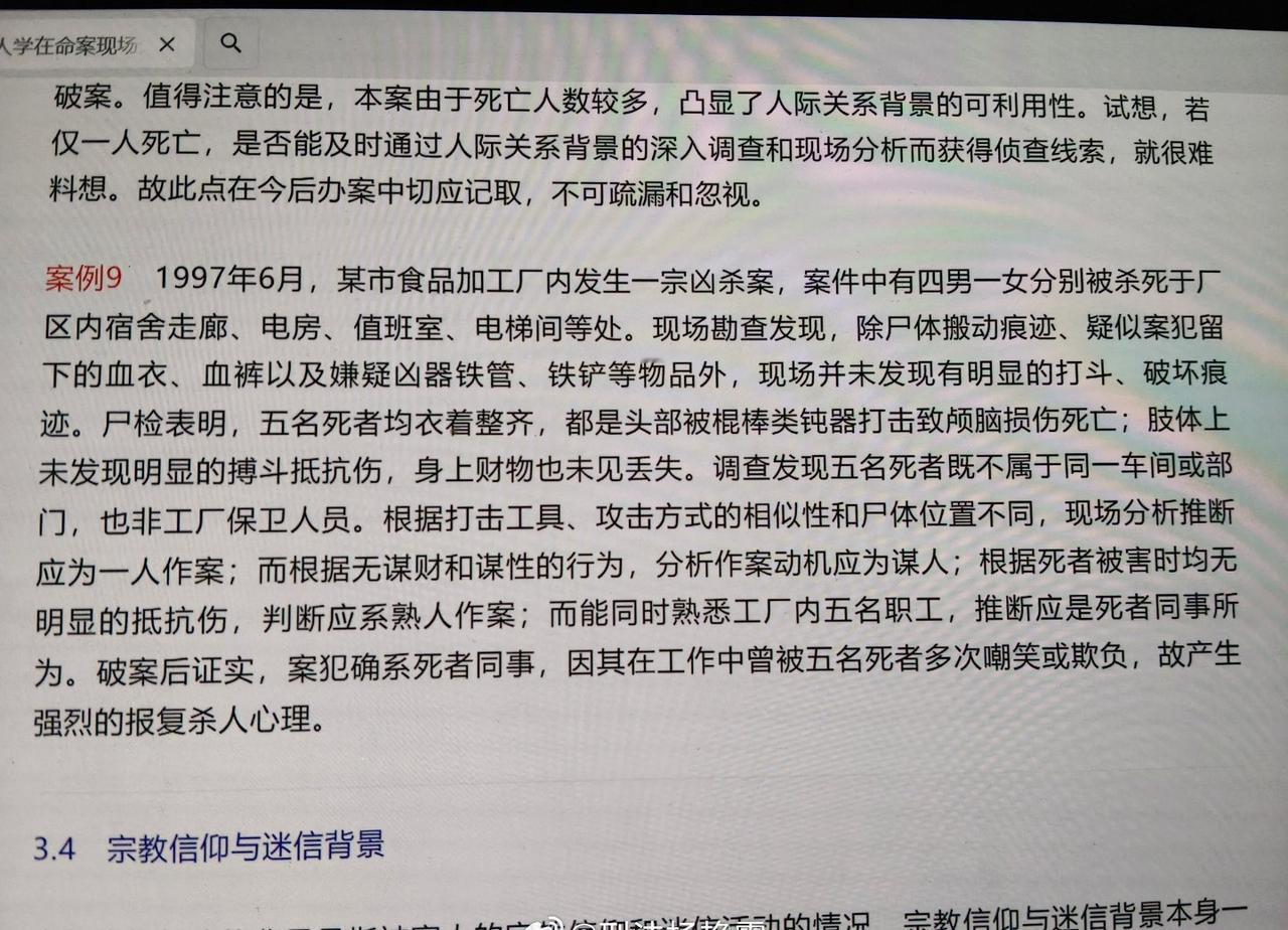 工厂中的马加爵。案例来源—闵建雄:《被害人学在命案现场分析中的应用》。