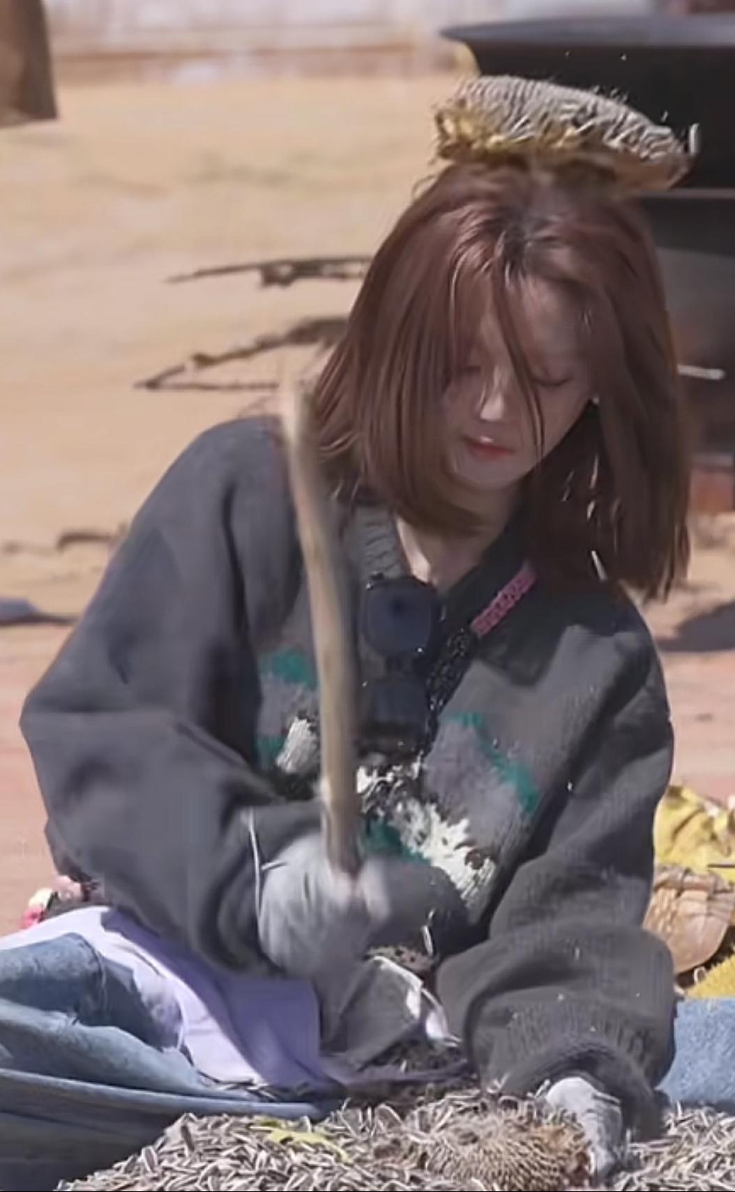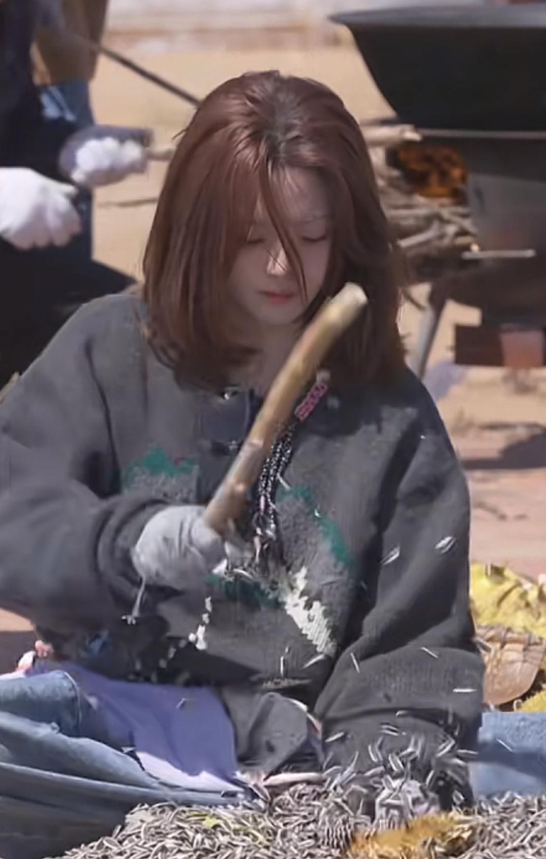 看超越妹妹这敲瓜子的架势,哪儿有半分娇柔女明星的影子?灰卫衣配手套,头发随意散着,手里的小木棍起落得又快又稳——瓜子壳“噼里啪啦”崩开的节奏,听声音还以为是农民伯伯在干活。 明明是能靠颜值圈粉的长相,偏要凭“接地气”圈死忠:打稻谷是能手,敲瓜子也像老手,连身上沾点碎壳都毫不在意。没有明星的“精致包袱”,只有往生活里扎的实在劲儿,漂亮又鲜活,难怪路人缘能好得让人忍不住好感~