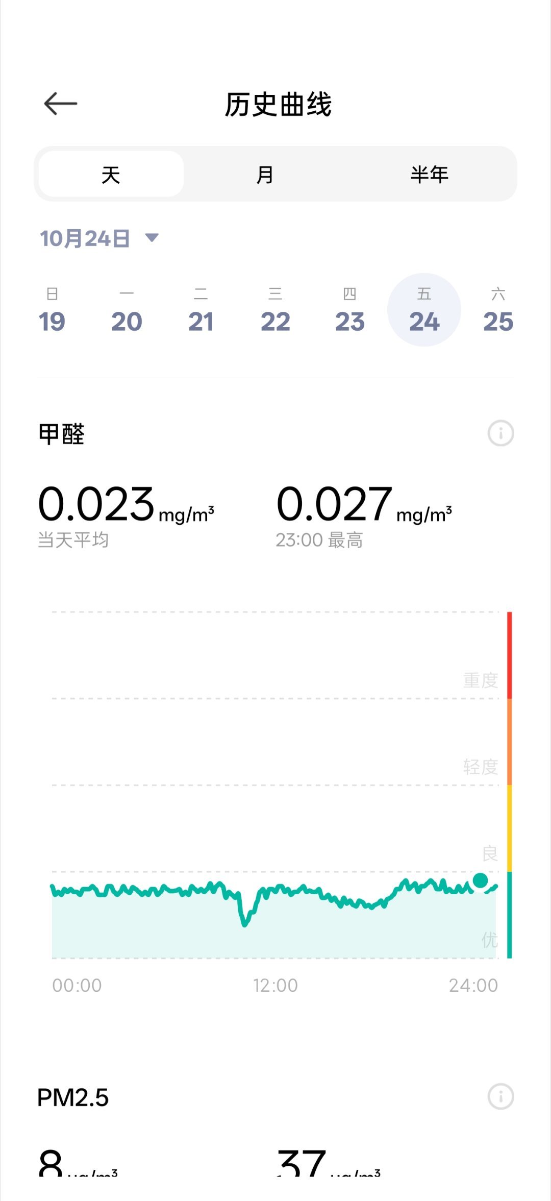 这两天发现家里的空气净化器数值都非常低,特别是甲醛。