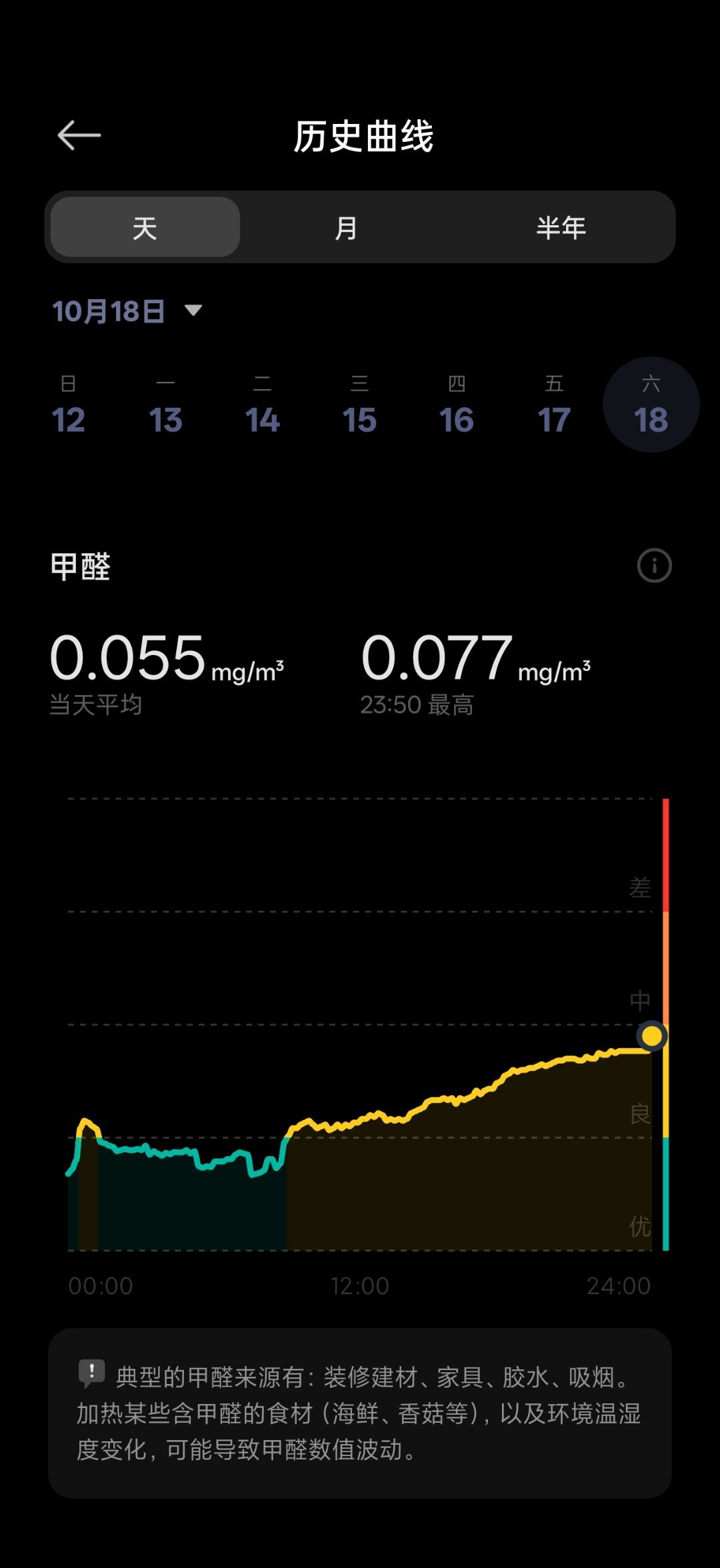 估计是因为这两天深圳降温,空气质量也都变好了,屋里的甲醛释放也变慢了。[吃瓜]