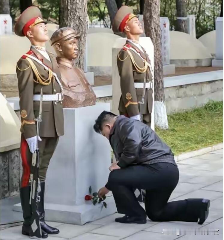金大帅单膝跪地那一下, 看得人心里直发烫。 75年前志愿军跨过鸭绿江,用血肉之躯筑起防线,今天金大帅在毛岸英墓前单膝默哀,不是普通礼节,是把当年用鲜血凝成的情谊,实实在在刻进了心里。 朝鲜是咱们唯一的军事盟友,东北亚要稳,靠的就是这种互相托底的关系,你为我挡过枪,我记你一辈子好,这才是真交情。 这样的交情,谁能不放在心尖上?