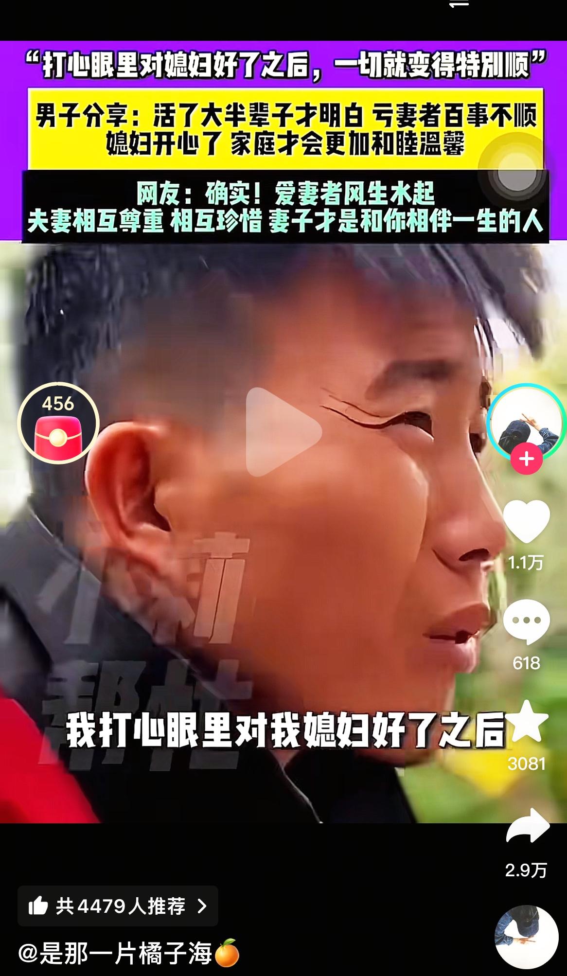 亏妻者百事不顺------ “打心眼里对媳妇好了之后,一切就变顺了”——这话你信吗?我信!活了大半辈子才明白,对老婆好从来不是“吃亏”,是家庭兴旺的钥匙。 好多男人觉得“赚钱就行,哄老婆没必要”,可你看那些把老婆宠成宝的家庭,哪有鸡飞狗跳的?老婆开心了,家里笑声多了,连运气都跟着好起来。这不是迷信,是人心换人心的道理。你把她当外人,家就成了战场;你把她当自己人,家才是港湾。 别觉得“对媳妇好”是丢面子,真正有本事的男人,都知道疼老婆是稳赚的投资。那些说“亏妻者百事不顺”的网友,早就看透了这层理儿。 你家那位有没有被你好好放在心上?你对她的好,是不是也让家里越来越顺了?