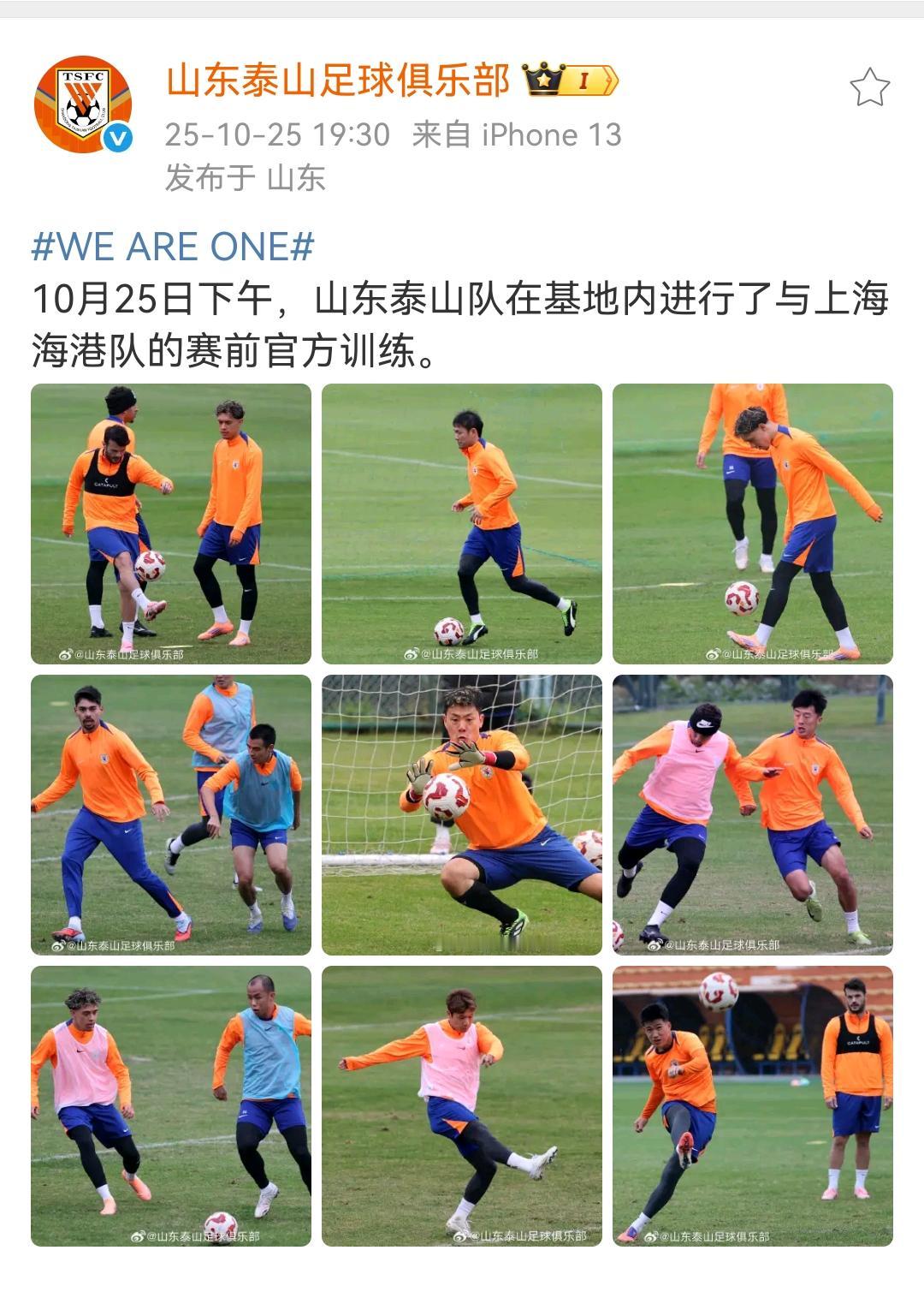 山东泰山队在基地内进行了赛前官方训练!上海海港两名主力没来济南。 10月25日下午,山东泰山队在基地内进行了与上海海港队的赛前官方训练。 上海海港队蒋光太、加布里埃尔两名主力没有来济南?济南奥体踩场了,也没见人。赛前新闻发布会,穆斯卡特说蒋光太并没有受伤,这是葫芦里卖的什么药? 2025中超联赛第28轮 🆚山东泰山VS上海海港 ⏰2025.10.26(周日)15:30 🏟济南奥体中心体育场 📺中央广播电视总台体育频道(CCTV-5)、山东广播电视台体育休闲频道、五星体育、@咪咕视频APP、移动高清、咪视界、央视体育客户端、央视频 直播。 泰山队明年人员调整,建议第一需要淘汰的是洛佩斯,其次泽卡有水平有能力,只是他的玻璃人体质就跟当初的贾德松一样,马德鲁加也只能凑合用,但期待有更强的替代者,瓦科可以,留就怕续约条件双方谈不拢,克雷桑今年发挥未达预期,原因还是缺了莫伊塞斯那样的队友,接下来看泰山队怎么操作。 加油泰山队,拿下海港。