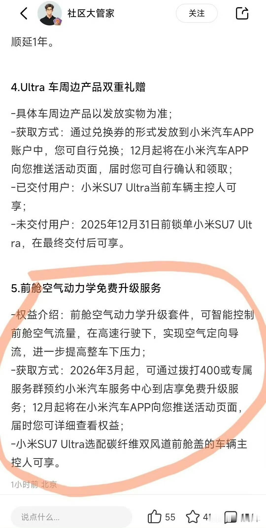 小米su7 ultra免费升级打孔机盖 ?不是说内部结构不一样,不能随意升级吗?我记得是雷总发布会上正式说的啊。