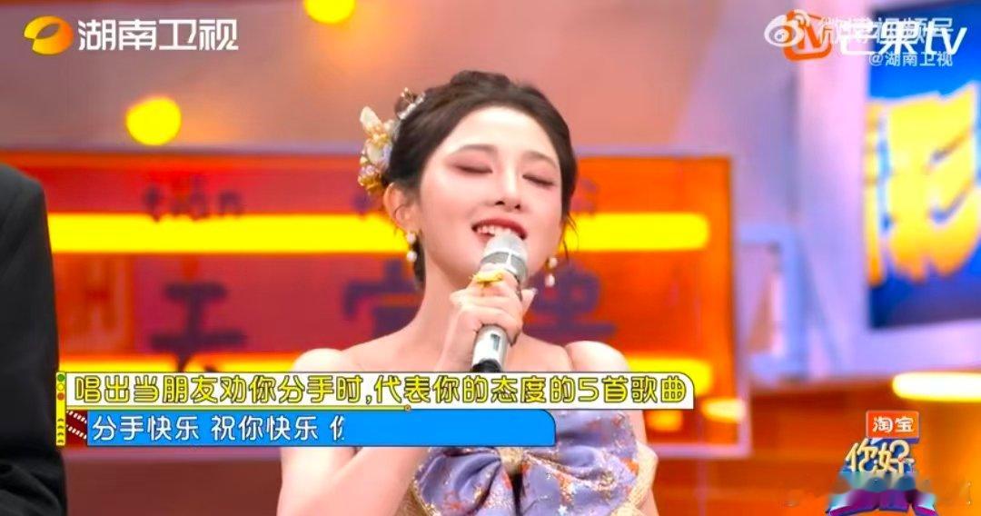 彭小苒礼服配洞洞鞋你好星期六 谁懂彭小苒的松弛感!一身华贵紫礼服搭洞洞鞋,台上还唱着《分手快乐》,这反差萌直接戳中笑点,也太会玩了吧!