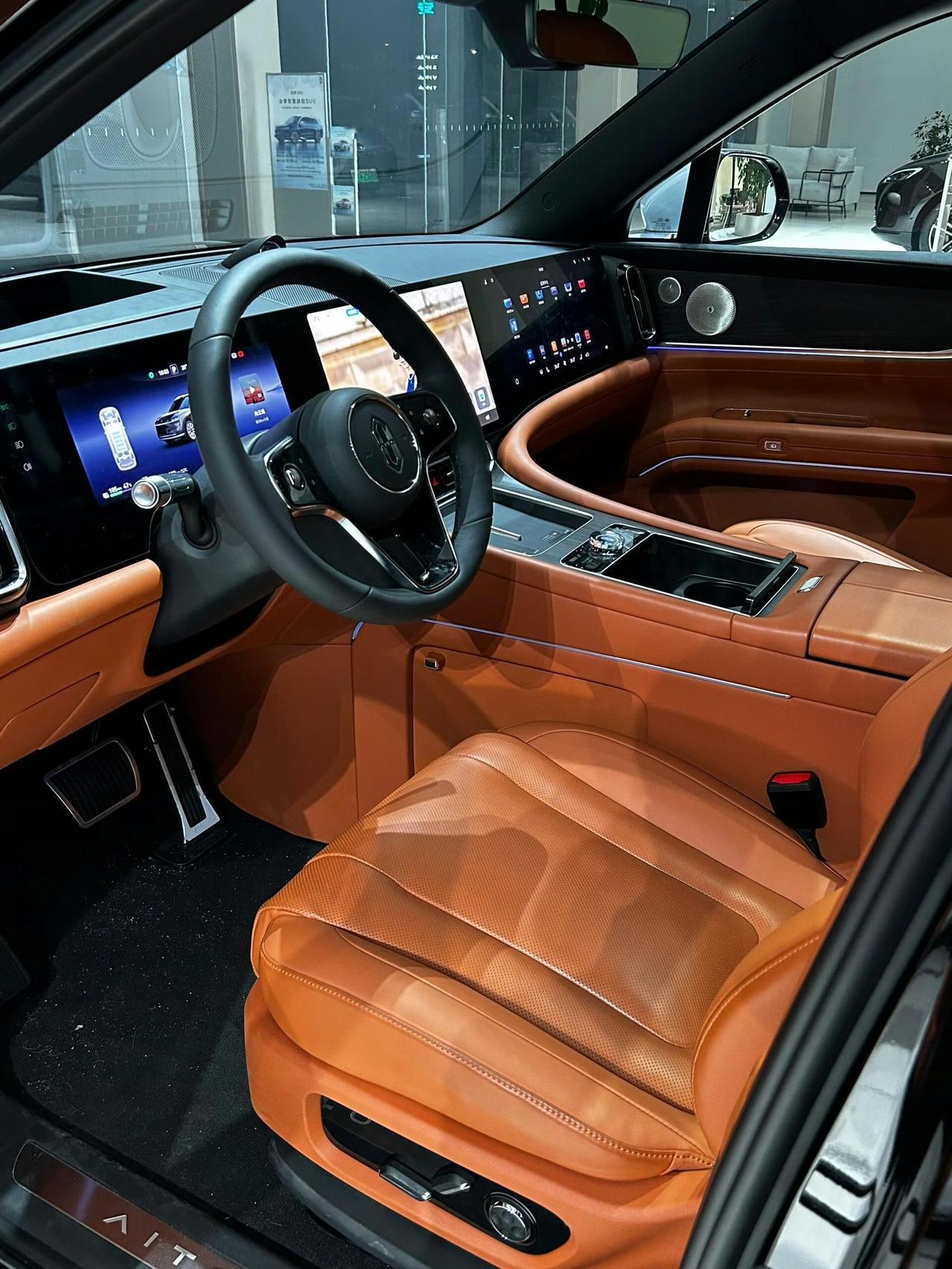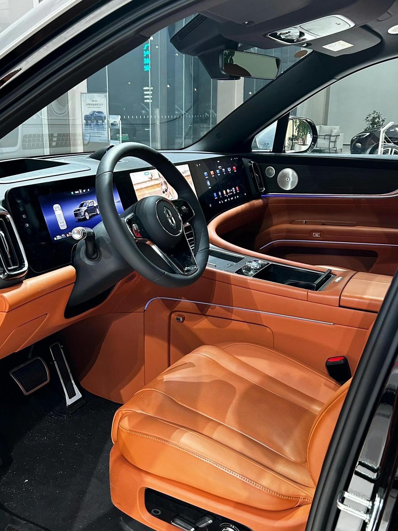 问界M9增程Max六座版,鎏金黑外观搭配赤茶橘内饰,简直太漂亮了。 2025款问