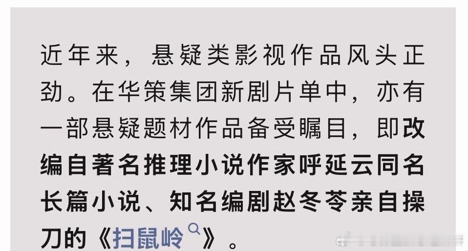 说田栩宁要和张若昀合作🐧的《扫鼠岭》