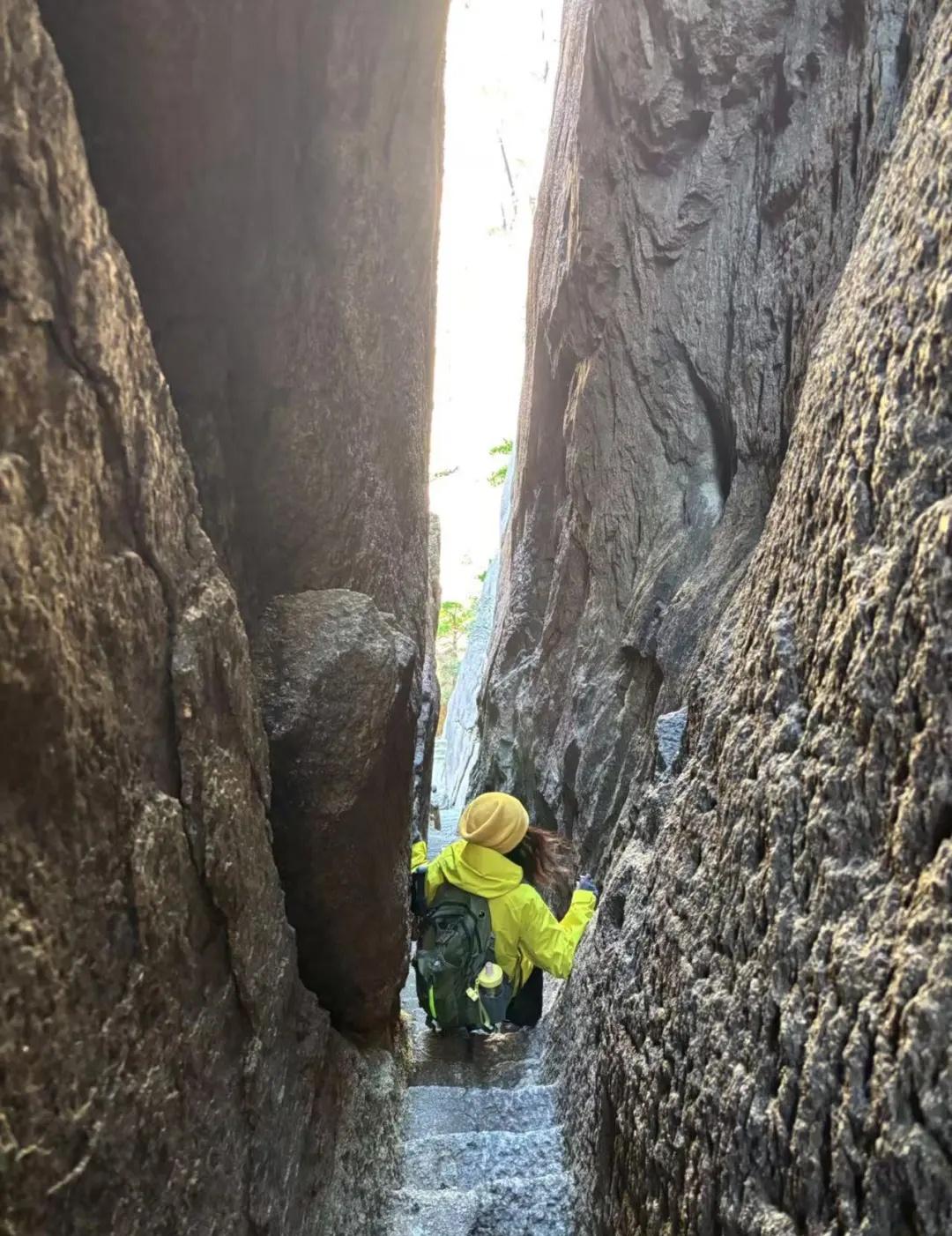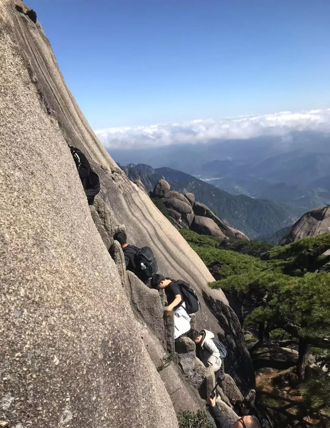 女大两天一晚爬黄山最真实花费➕行程💦 说好的穷游呢🌚💦❓ 不出去玩根本不知道会发生什么突发情况() 10.21号晚到黄山北站住宿,22-23号两天爬完 p1从走出宿舍门到回宿舍门所有花费 p2两天线路(全程徒步👊🏻) 本来想着能不能走完二环从黄山西大门那边绕回来,蒽别想了不可能,下到二环下面只能坐小火车上来,因为那边步行需要走七公里山路,基本不可能走回来[鼾睡][鼾睡][鼾睡] p3山脚下买的手套()左右手都是少食指和大拇指,是精心设计的吗🌚我觉得可能是方便解锁手机(但是手套比较薄 爬天都峰或者日出想戴最好还是自备一个厚点的) p456出片 p7光明顶晴天往下看有彩虹 p8天海广场酸菜盖浇面 p9.10日出🌅云海很美腻 p11🍔➕奶茶 p12天都峰老道口上 p13.14登顶 p15唧唧山⛰️ p16(我感觉很像一个表情包) p17.18新道口下(真的很陡 陡的路很多 走完膝盖要废了) Day1➡走的云谷方向,第一天早上六点四十出发,司机接去山脚,(大巴是30,这个贵五块可以直接从酒店门口接很方便)步行进入,买票景区内部大巴,时间约半小时,到爬山入口八点半,(一直往前走是索道,步行上山左拐,不要走错了)走走停停拍照片,下午三点半到光明顶,五点到天海广场,吃完饭本来想看日落,说是五点半就已经没了,于是休息(最好去早点可以坐在比较舒服的里面的位置) Day2➡四点半赶人,我四点就走了,(不太推荐走很早,山上很冷,风往衣服里面钻)星空超级好看超级美,我第一次见到这么繁密的星空,仔细看能看到流星🌠 五点半天边就有亮度了,六点多日出(具体时间可以看官方天气和通知) 七点出发去看迎客松,八点到(人很多) 八点半老道口上爬天都峰 九点登顶 拍照拍照📸 十一点从新道口下 巨漫长❗走了三个多小时,因为中间🈚缆车,只能走,但是老道口下特别特别窄,我感觉非常危险,因为老道口两边都是空的很害怕😱,重来一次我还是选择老上新下。。 两点多十分到出口坐大巴🔚 徒步丈量世界 小小黄山轻松拿下solotrip女 小小黄山拿捏 总要来黄山看看云海吧 黄山 光明顶 天都峰 老年人