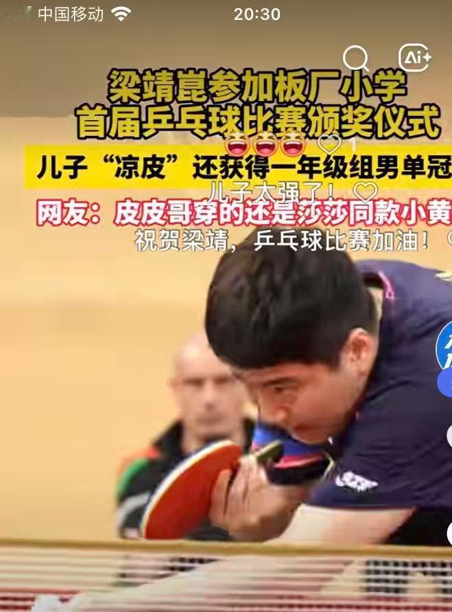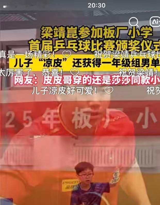 梁靖崑给儿子颁奖,全场最安静的那个孩子,手里攥着奖杯,笑得比谁都真。 不是演戏,是真把冠军奖杯递到自家娃手里。 保定板厂小学的操场上,没摆架势,没喊口号,就一老一少,一奖杯,一掌声。 省乒协早就在铺路。 每周三下午,退役省队队员准时来上课,不收钱,不打卡,就教一年级的小豆丁们发球、接球、喊“哎哟好球”。 这事儿没人逼,是冠军自己带的头。 流量不是用来蹭的,是拿来种地的。 种子撒在小学的水泥地上,明年春天,说不定就长出下一个奥运冠军。 孩子叫“凉皮”,教练叫梁靖崑。 名字土,路子正。