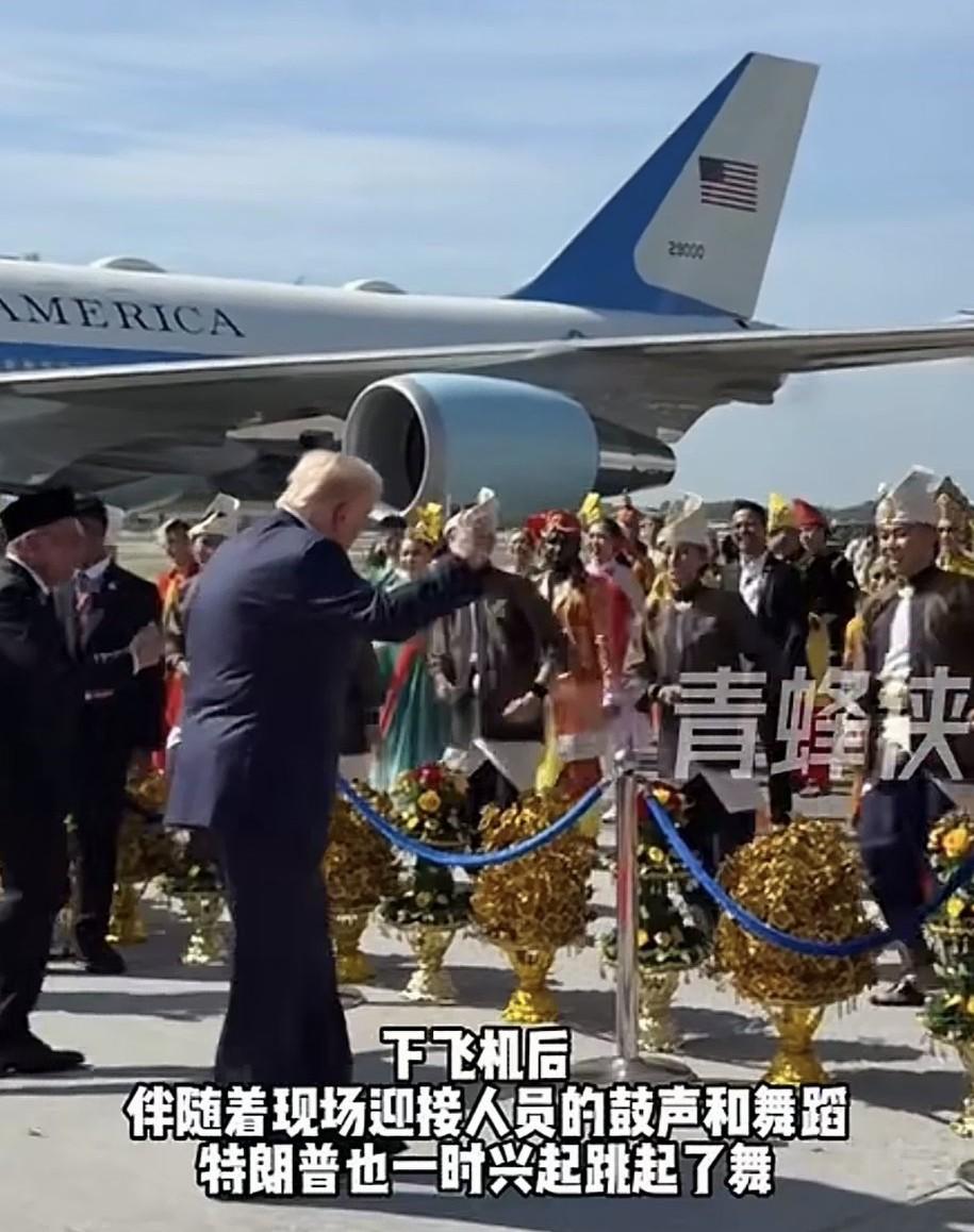 特朗普这“标志舞”真是太出圈了!在马来西亚站一下飞机,就跟民众即兴共舞,丝毫不在意国内的糟心事。此前在佛罗里达州竞选集会上演讲结束,他也伴着《Y.M.C.A》音乐跳起标志性舞蹈,又是握拳又是指远方,相当投入。这也不是他第一次跟着这音乐舞动,9月竞选活动就有过。而且当时他感染新冠后首场集会,登机、演讲都不戴口罩,还说自己免疫了要亲观众。感觉他就像个老顽童,沉浸在自己的节奏里,管他什么政府停摆、抗议动乱呢。 对此你怎么看?
