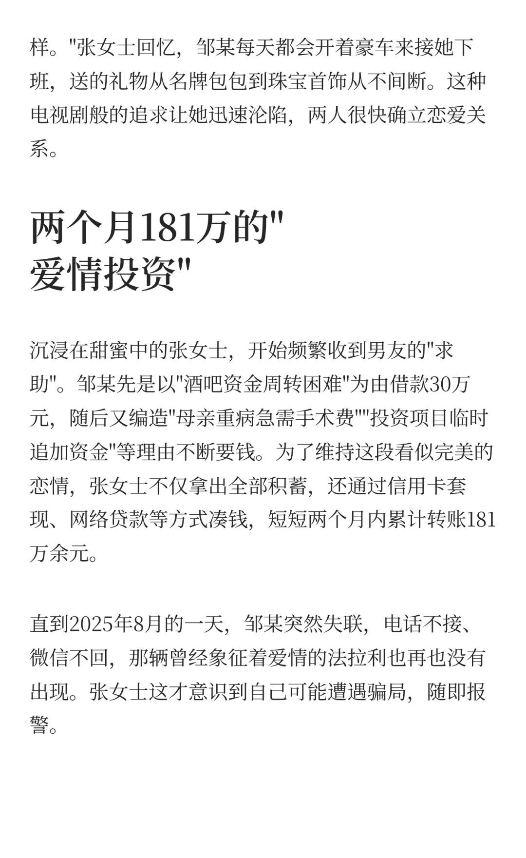 女子酒吧邂逅"完美恋人"两月被骗181万法 情感诈骗法律警示防骗指南恋