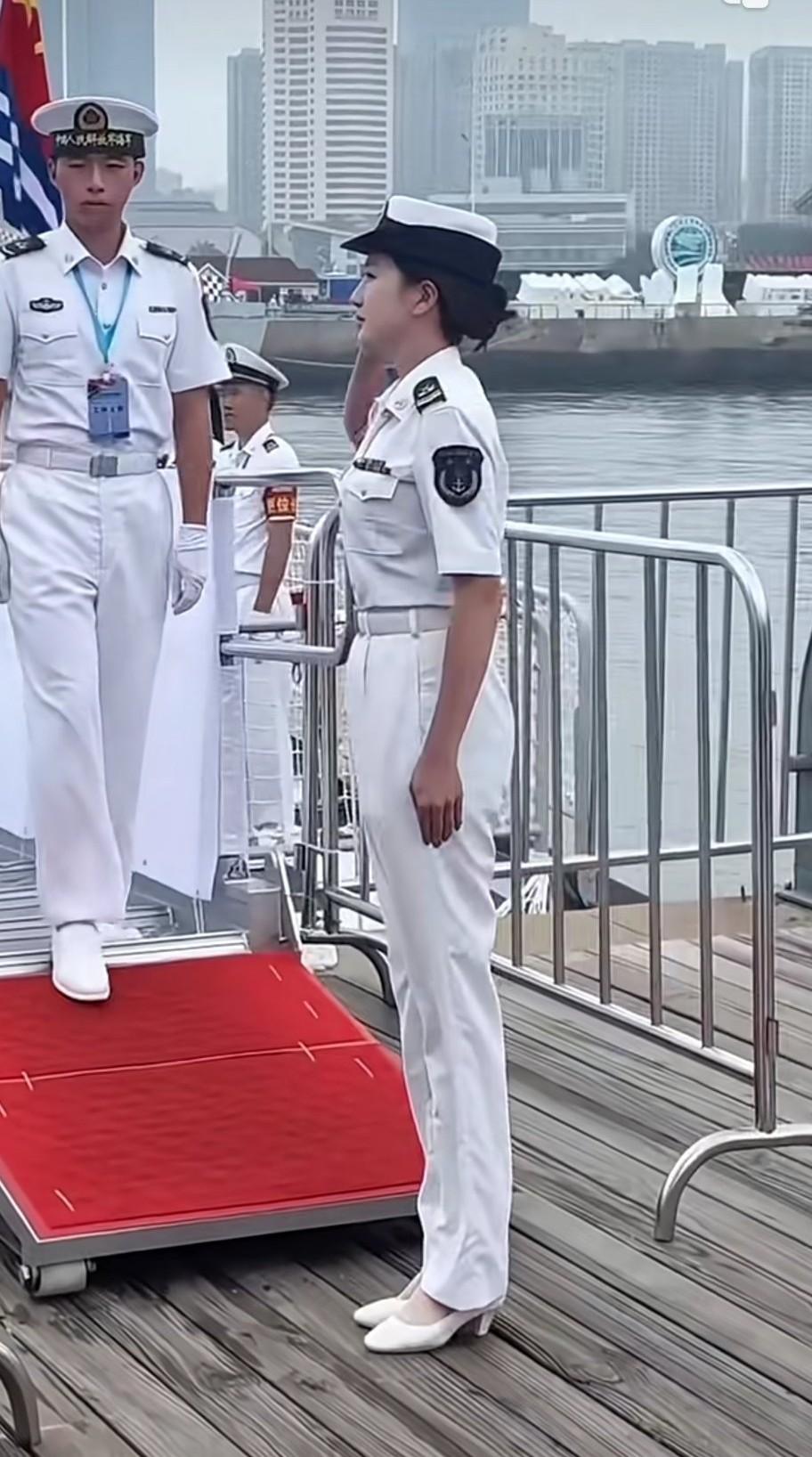 现在的海军女兵,白色礼服非常漂亮,鞋子也变成了高跟鞋。真美,真飒! 我们当海军的时候,还是绿色胶鞋,上白下蓝。