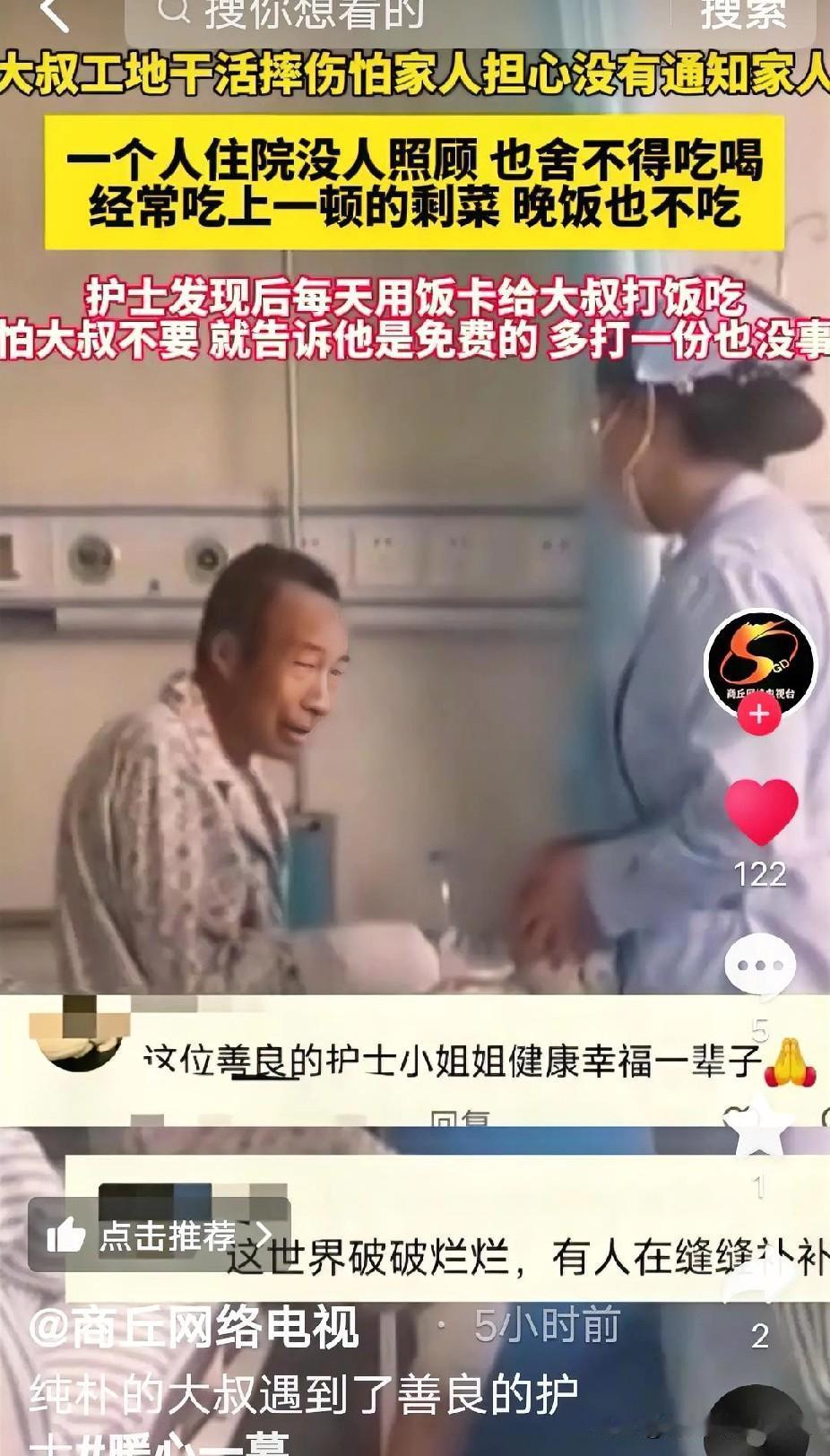 近日,辽宁鞍山,一名小伙子住院期间,发现对面大叔一个人躺在病床上,既没有老伴的陪伴,也没有儿女前来照顾。大叔自己照顾自己,舍不得吃喝,打一份菜要吃好几顿,有时候晚上还不吃饭。 小伙子心里挺不是滋味,他想起自己远在老家的父亲。医院这地方,白天人来人往还好,一到晚上,安静得能听见点滴声,那种孤独感能把人吞没。他看着大叔蜷缩的背影,终于没忍住,第二天打饭时多打了一份肉菜,默默放在大叔床头柜上。大叔愣了一下,混浊的眼睛里闪过一丝光亮,嘴唇动了动,那句“谢谢”轻得几乎听不见。 从那天起,小伙子打饭总会给大叔带一份。起初大叔很拘谨,拼命掏口袋想给钱,被小伙子按住了手。“大叔,谁还没个难处,一顿饭不值啥。”小伙子发现,大叔不是不想吃,他是真舍不得。闲聊中得知,大叔的儿子在广州打拼,几年前老伴走了,他就成了“空巢老人”。这次住院,他跟儿子只说“小感冒,别担心”,转头自己揣上积蓄就来了医院。他总念叨:“孩子在外头不容易,别给他添乱。” 这场景并非孤例,根据民政部数据,我国空巢老人占比已超过老年人口的一半,部分大城市和农村地区甚至超过70%。 然而,这种依靠个体善意的互助能持续多久?隔壁病房的护工老谭见过太多类似情形。他曾在广东从事企业管理,回到长沙照顾生病的父亲后,选择留在医院当一名生活护理员。他说这份工作让他感受到价值,但同时也看到专业护理与临时帮忙的本质区别。小伙子很快面临现实难题:伤口换药后行动不便,帮大叔打饭变得困难。有次他端着两份饭踉跄走回病房,差点摔倒。大叔看着心疼,却无力帮忙,那种无力感刻在两人脸上。个体间的温暖值得赞美,但若将其视为解决社会问题的常态,无异于将千斤重担压在偶然相遇的陌生人肩上。 更值得深思的是大叔那句“不添乱”背后的沉重。这并非个例,一位70多岁的老人曾在医院照顾生病的老伴时因不会照料而情绪崩溃,体重骤减30斤,但当旁人建议他叫子女来时,老人只说:“给谁打电话都没用,生病了,大家都不好受。” 这种“不愿添乱”的沉默,成为一代人守护尊严的方式,也折射出代际间的理解鸿沟。年轻人追逐生活,父辈们则用沉默成全这种追逐,代价是自己的孤独。 问题核心或许不在于子女是否“孝顺”,而在于社会结构变迁下传统家庭照护模式的难以为继。当1.9亿老年人患有慢性病,超七成老人选择独自就医,仅靠道德呼吁子女“常回家看看”显得苍白。我们需要更系统的支撑。福建、湖南等地已开始试点“无陪护”病房,由经过规范培训的护理员承担患者生活护理,费用由财政、医保、患者共担。这类尝试意在将照护责任从个体家庭转移至社会系统,但推广仍面临专业标准统一、资金可持续性等挑战。 小伙子出院前,给大叔儿子写了封长信,没指责,只细细描述大叔如何把一份菜分三顿吃,如何盯着窗外看。他明白,简单的道德批判无济于事,需要的是社会层面的觉醒与行动。正如一些医院已开始进行适老化改造,开设老年专科,为高龄、失能老人提供绿色通道,探索长期护理保险制度。真正的关怀,是让每个老人在病痛时都能有尊严地获得照料,而非将希望寄托于陌生的善意。 各位读者你们怎么看?欢迎在评论区讨论。