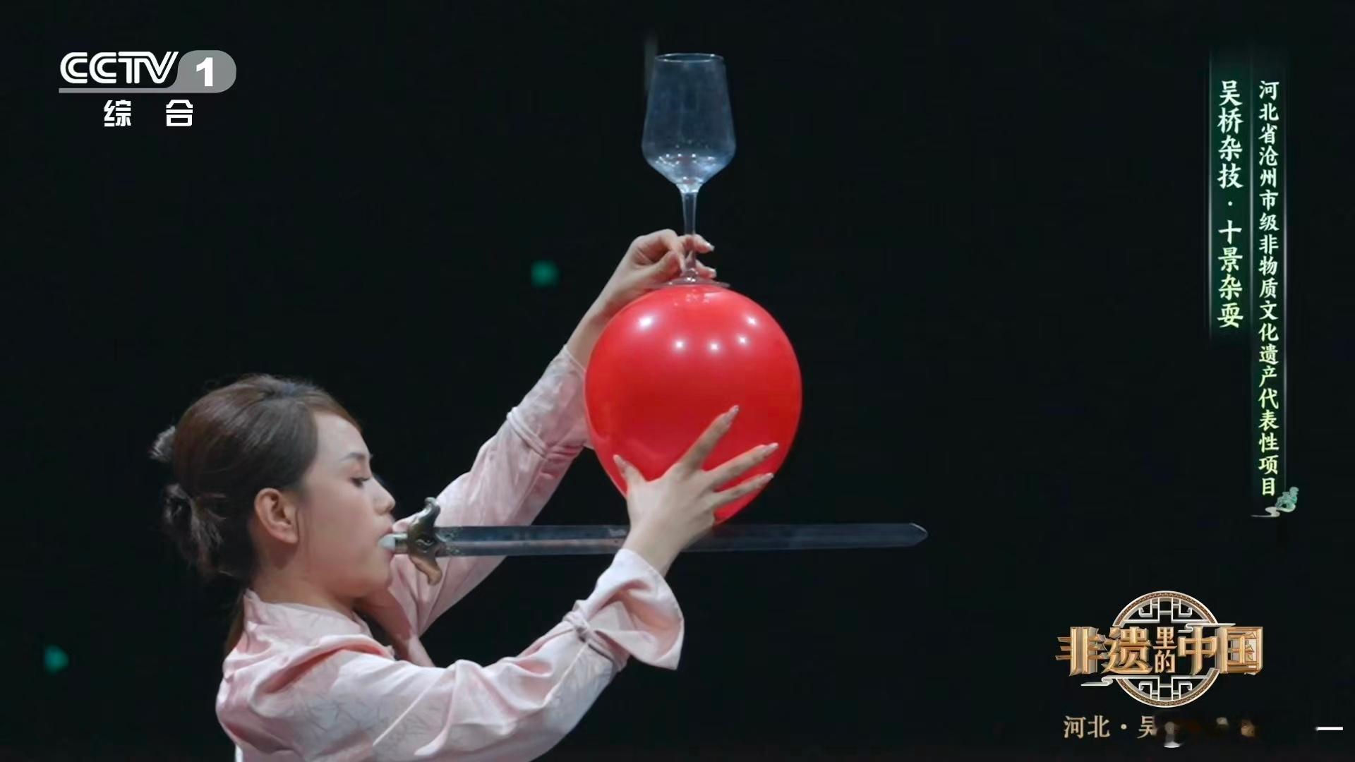 中国杂技看呆了王娜娜表演的口叼技里,就靠两根细细的扦子真的太绝了!这扦子看着纤细没什么分量,却要承受后续顶起的物品重量