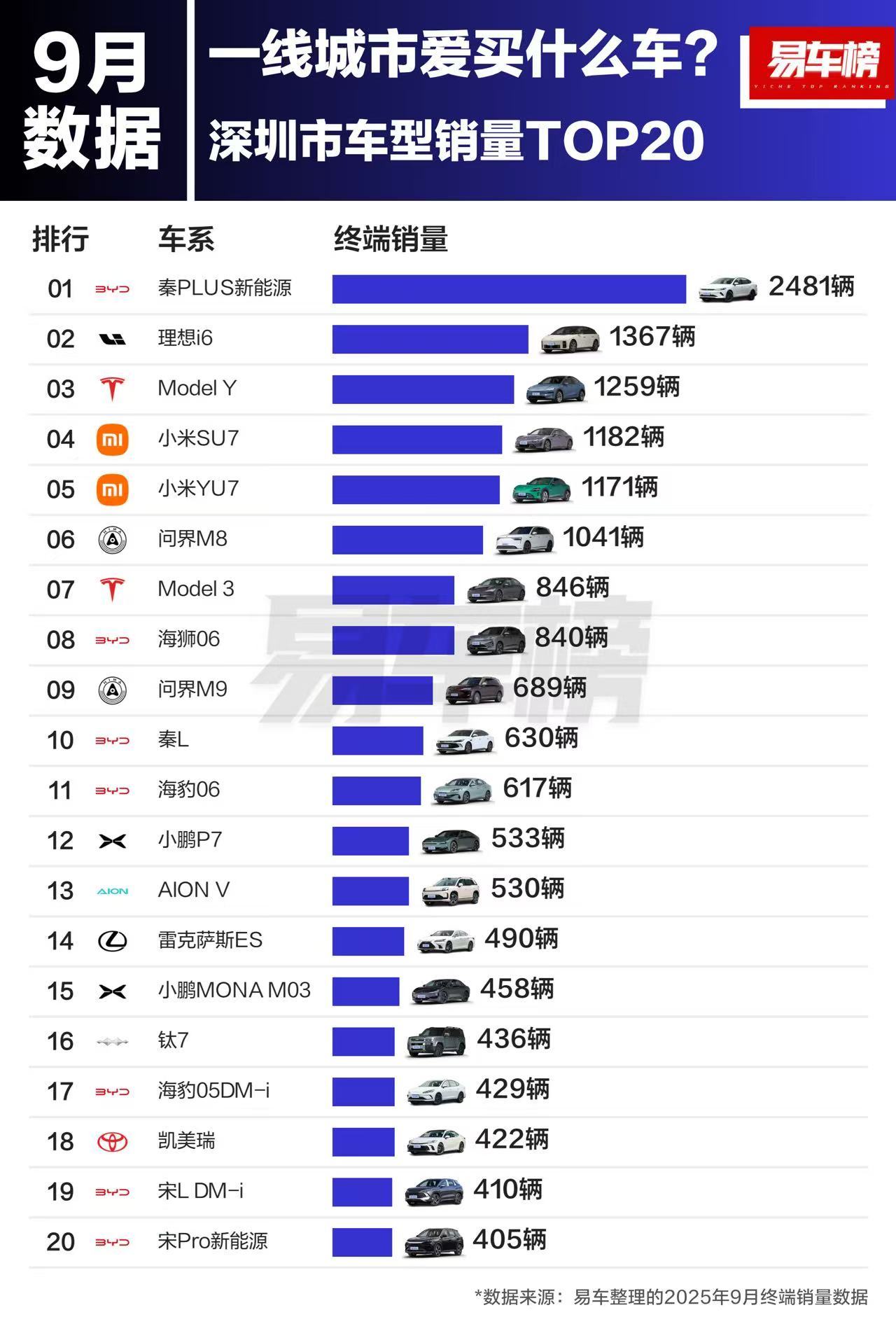 2025年9月,北京、上海、广州、深圳一线城市热销车型榜单曝光,TOP20出炉。