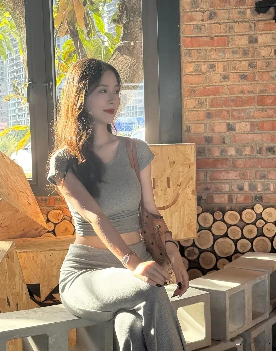 都市雅痞风穿搭,灰色运动套装搭配棕色手提包,简约时尚!浅灰色穿搭