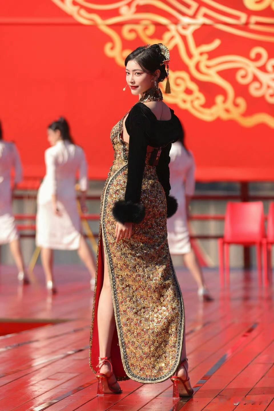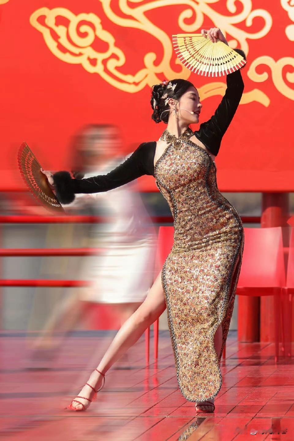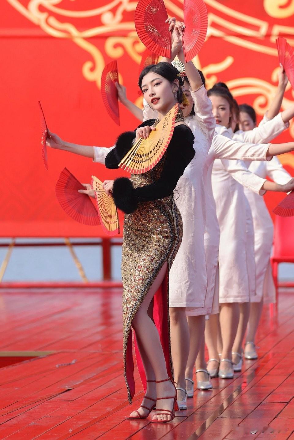 身穿开叉旗袍 搭配红色高跟凉鞋跳舞的许佳琪。舞姿优美,婀娜多姿!