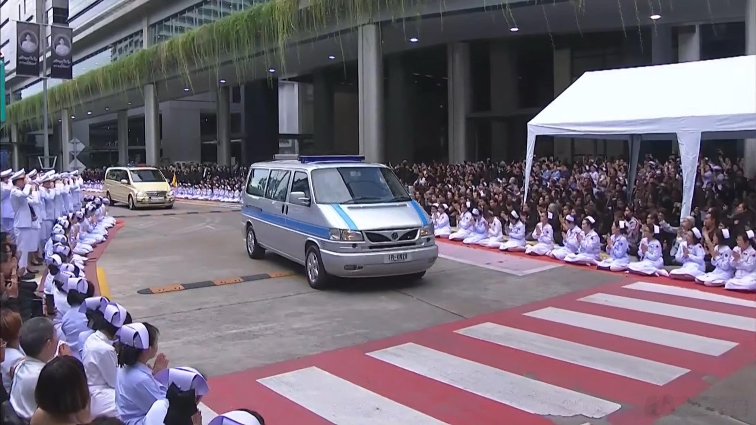 泰国王室 🇹🇭王室葬礼 10月26日,诗琳通公主抵达诗丽吉太后所在的朱拉隆功国王纪念医院,将太后的遗体从医院转移至王宫的披曼拉塔亚王座大厅。世界各国王室[超话]沿街跪满哀悼的人民。