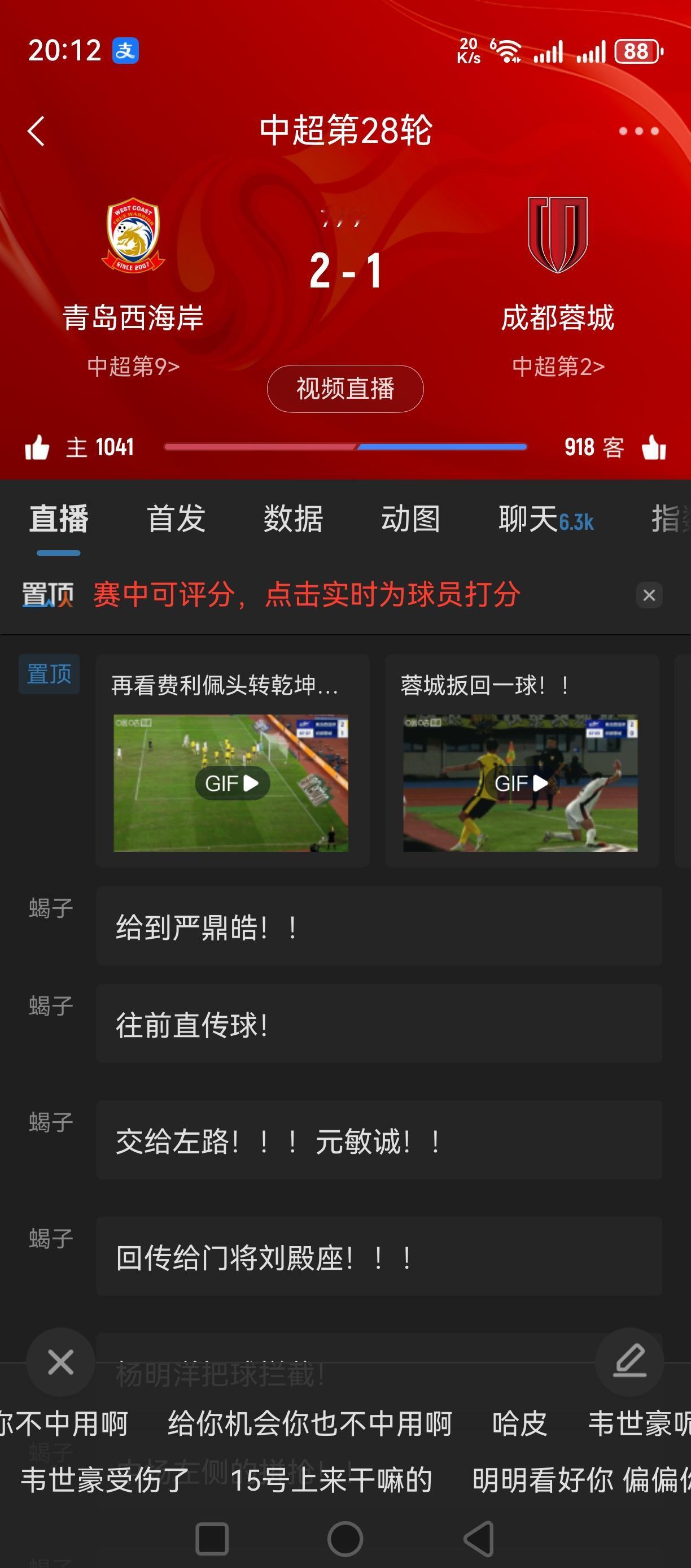 费尼佩头球破门!蓉城队扳回一球!1:2!比赛悬念回来了! 这是角球机会!蓉城队把握住了机会! 费尼佩跳得真高!这头球进得干脆![赞][赞][赞][赞]