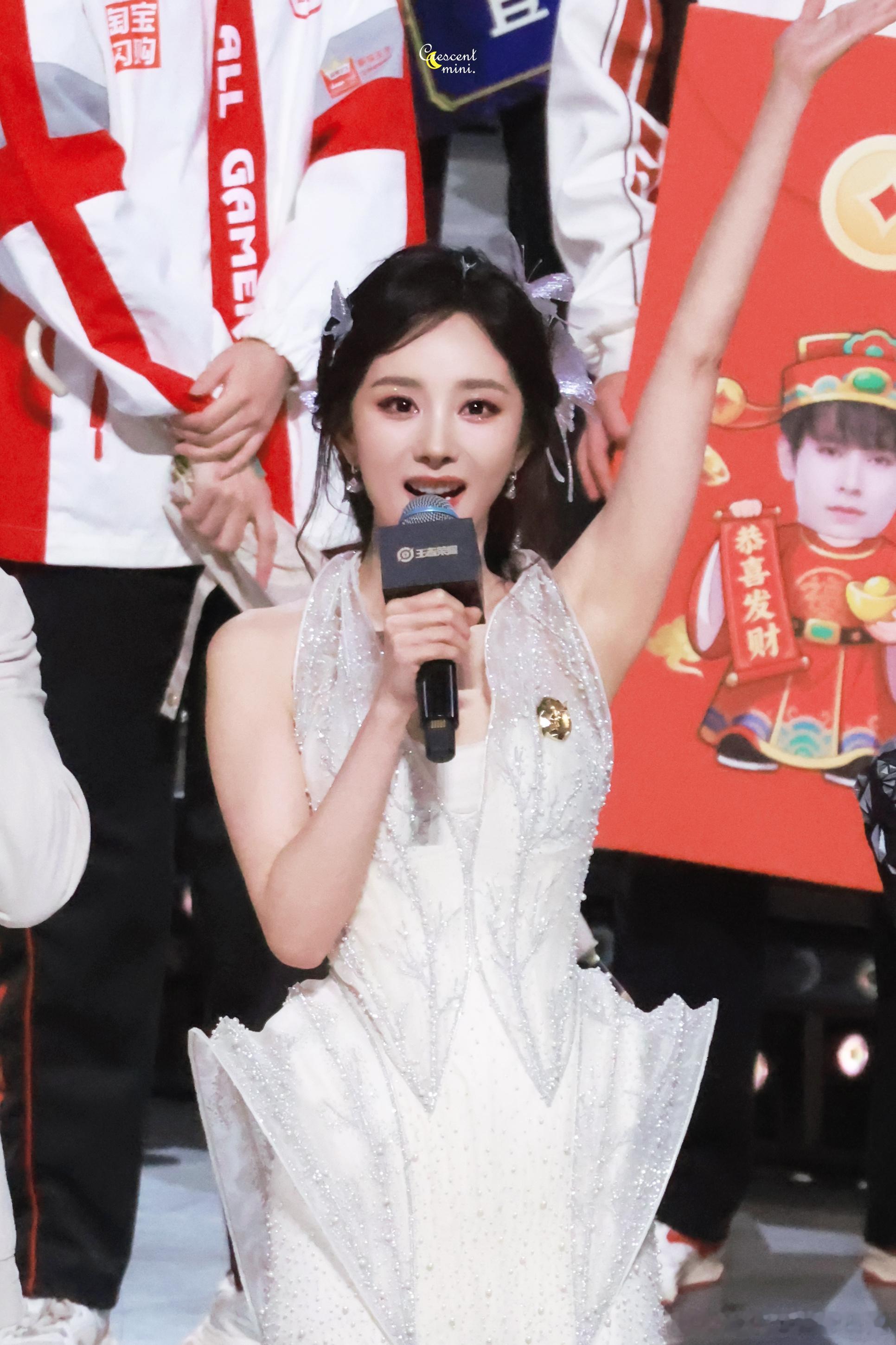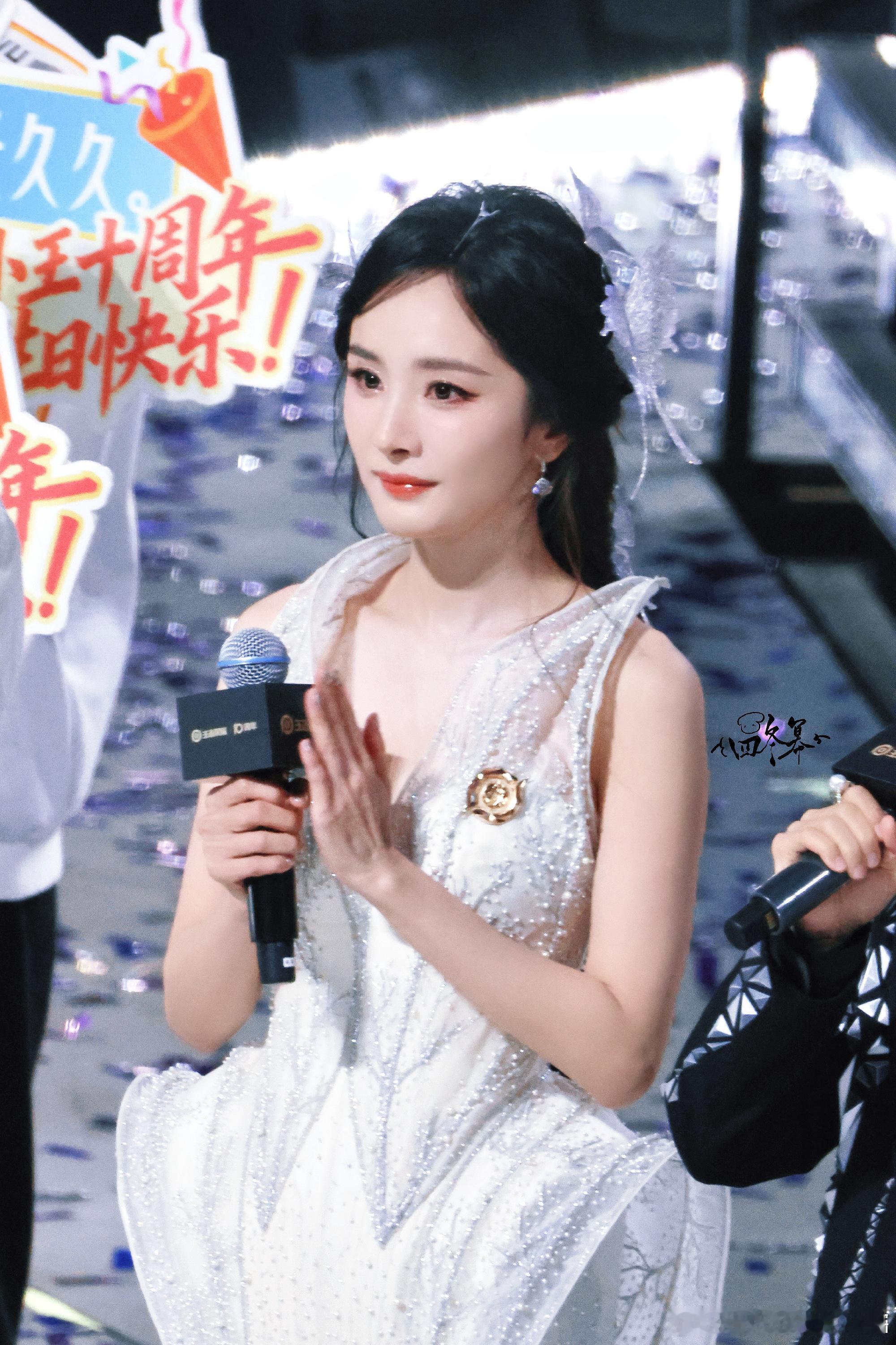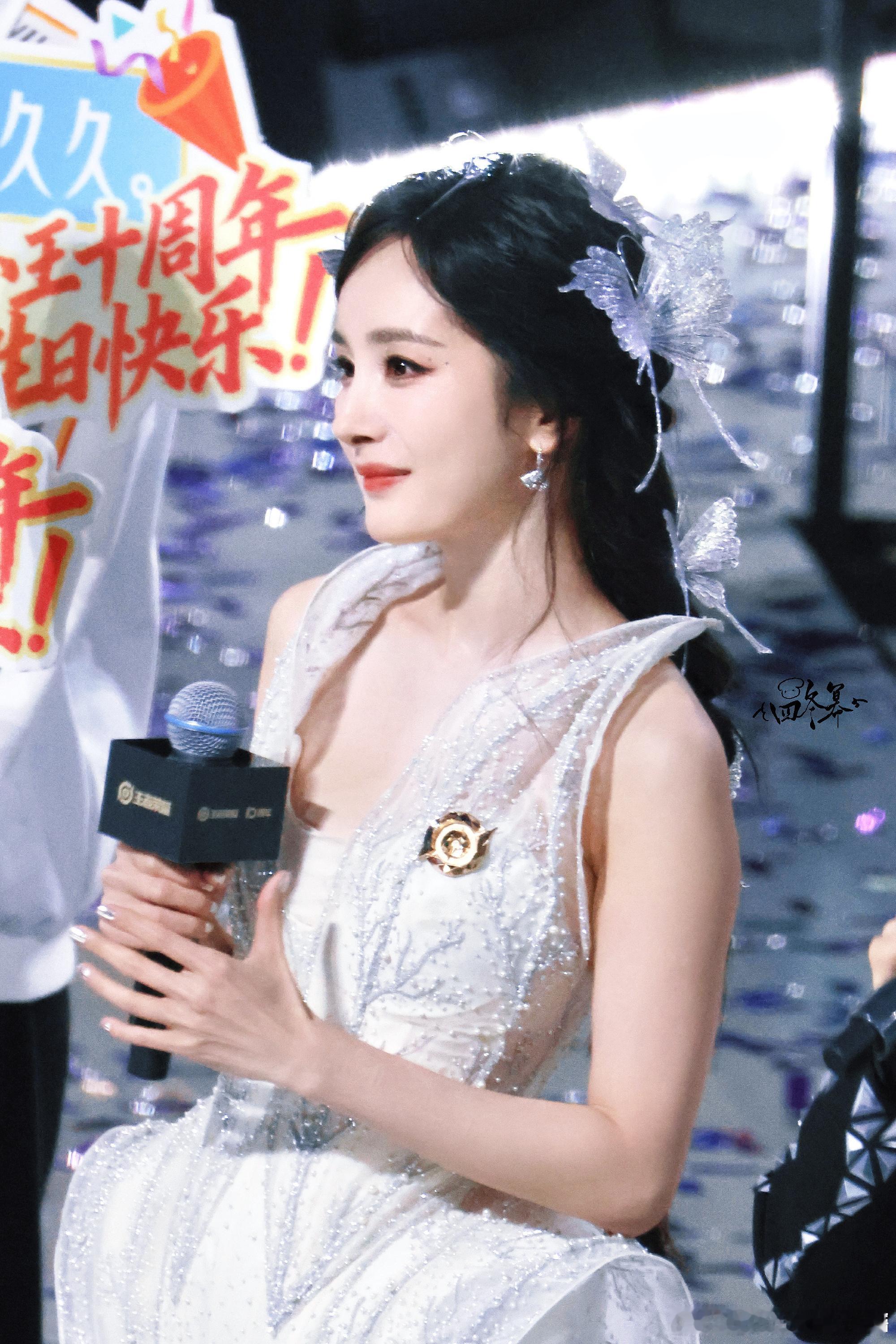 共创之夜美神降临 杨幂鎏金长裙太吸睛!裙身缀满细碎水钻,搭配珍珠发箍,走路时裙摆摇曳生姿,站在舞台上像从童话里走出来的公主~