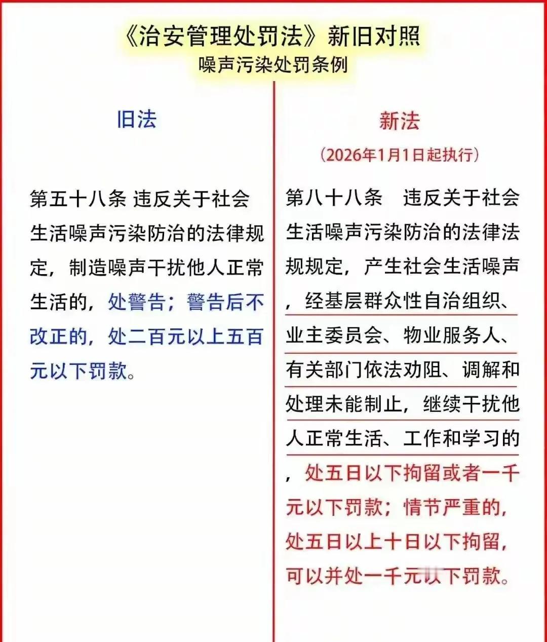 明年开始实行的新《治安管理处罚法》,明确规定:生活噪音归公安管,不再警告+罚款,