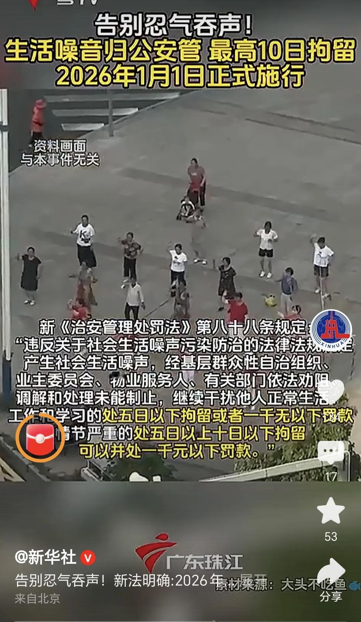 明年开始实行的新《治安管理处罚法》,明确规定:生活噪音归公安管,不再警告+罚款,改为最高10日拘留、千元以下罚款。 对于城市居民来说,楼上楼下的生活噪音是令人头疼的实际问题。看着是挺小的生活琐事,但却严重影响日常生活作息、足以把人逼疯。有宠物狗叫声、音乐外放声、聚会噪音、儿童蹦跳地板声、广场舞声……等等,不一而足。 最近柳州发生的一起刑事案件,网传就与生活噪音有关,酿成了悲剧。 过去对于生活噪音的处罚力度不大、最多就罚款500元以内,而且存在管理主体不明确的问题。 生活噪音,找物业、居委会、街道办、派出所,具体是谁来主要负责、解决流程是什么?没有法规明确。 明年实施的新法规,明确了生活噪音问题,如果经过业委会、居委会、物业、派出所等劝阻调解后依然不改的,那可处以拘留和罚款。 扰民处罚 室内噪音治理 夜间扰民问题 治安处罚条款 扰民赔偿