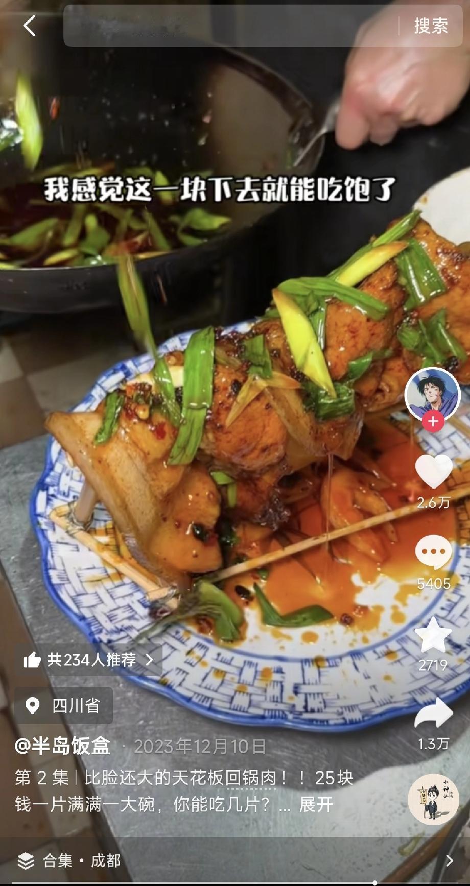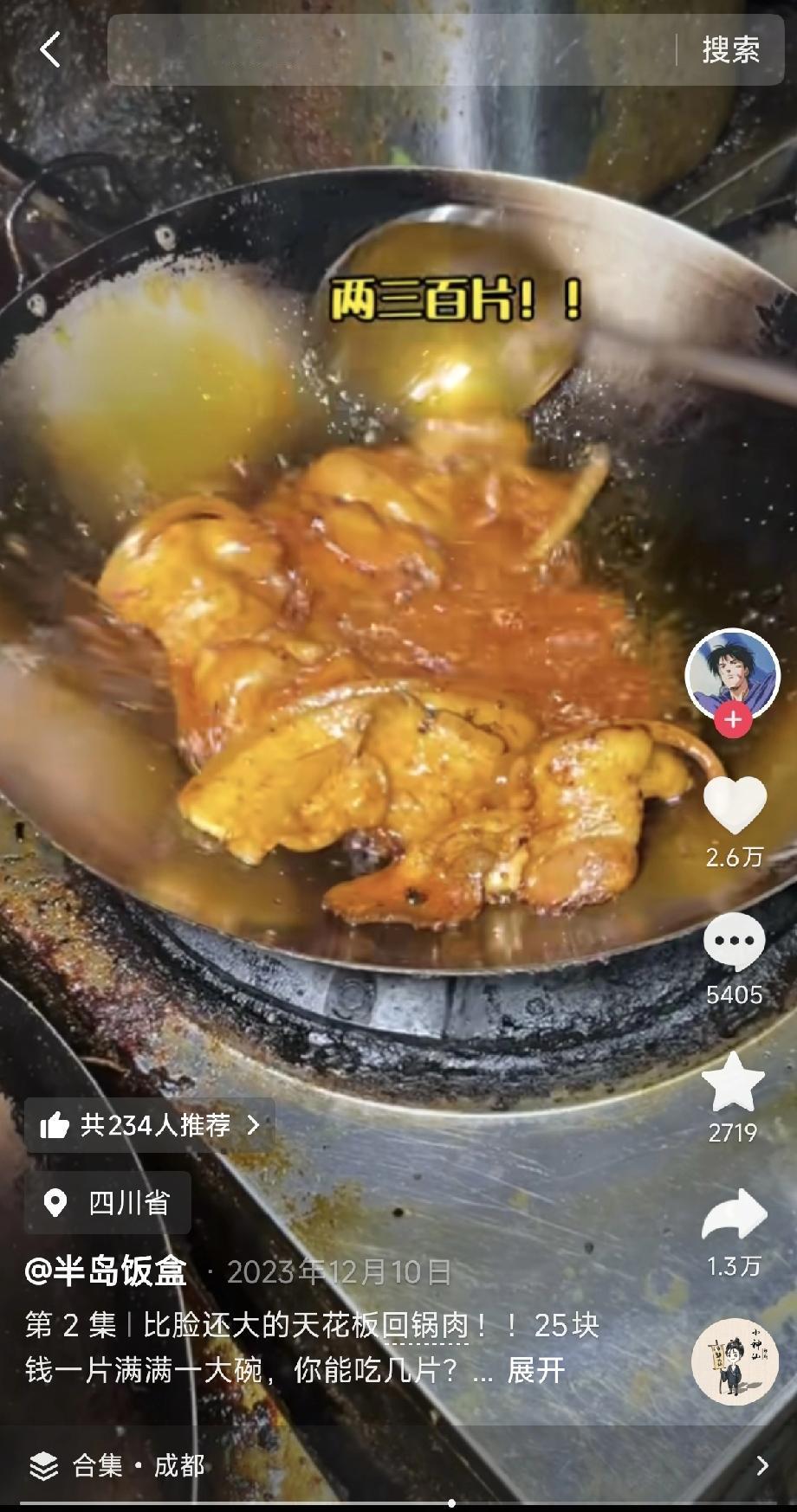 四川人是不是都很爱吹牛呀? 今天刷到一个卖回锅肉的老板,一片肉25块我忍了,三片起炒我也忍了,但是他竟然说一天要卖300片,这让我真的忍无可忍了,这牛吹的也太大了吧,25一片,一天卖300片。 那不是一天光这一道菜,都要卖七八千块钱了?现在的肉价10块钱都不到,他这片肉最多能值2块钱,他却卖25块钱一片。 也就是说他每天回锅肉的纯利润要赚95%以上。按每天卖七千块钱来算,就要赚6500。一年365天乘以6500等于多少? 答案是,纯收入237万! 现在开个集团公司也赚不了这么多钱吧!