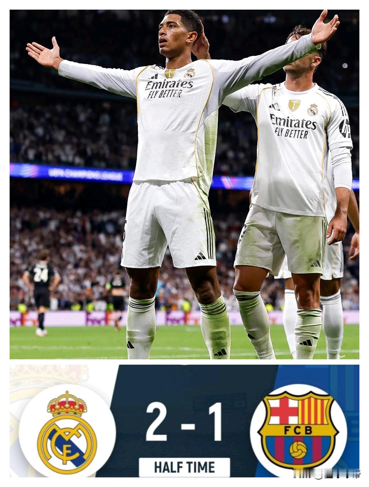 亚马尔好好学学,贝林厄姆1传1射皇马半场2-1领先巴萨! 紧张刺激的西班牙国家德比大战半场已经结束了,贝林厄姆助攻姆巴佩率先取得进球,虽然拉什福德助攻费尔明扳平比分,但是贝林厄姆又打进一球反超比分,目前半场皇马2-1领先巴萨。 今晚贝林厄姆踢出了2亿身价的表现,亚马尔则彻底隐身,连5000万身价都没有踢出来,看来谈恋爱真的影响了亚马尔的状态呀,亚马尔真该向贝林厄姆好好学学,真正的巨星是怎么踢球的。 看来今晚皇马拿下巴萨不是问题,终于要终结对巴萨的四连败了,风水轮流转,本赛季西甲是皇马的天下。