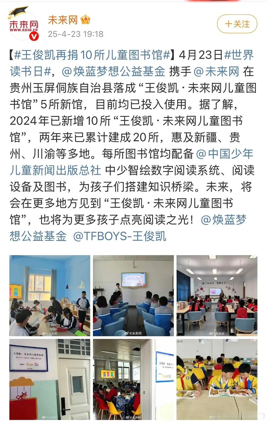 王俊凯又捐了一座图书馆人美心善一直在持续不断做公益