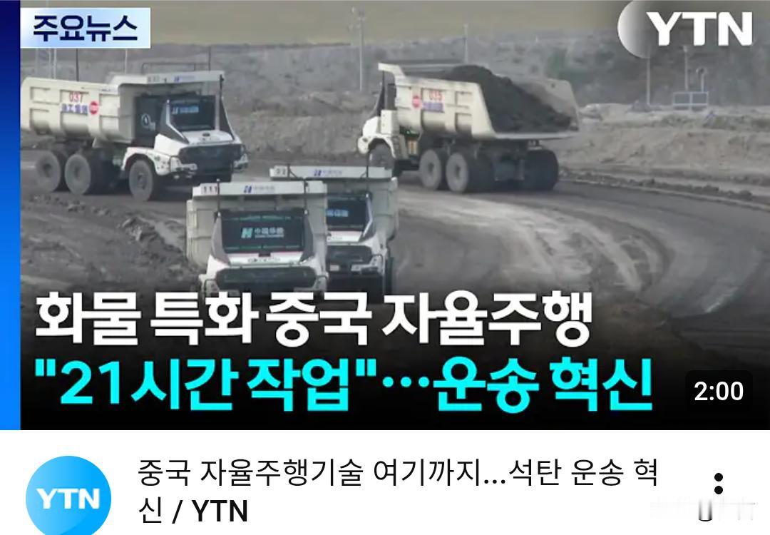 韩媒:中国的自动驾驶技术竟然已经发展到了这种地步。 10月26日,韩国媒体报道了我国的无人驾驶重型卡车在内蒙古一处露天煤矿的作业情况。 韩媒表示,这些卡车均配备了“自动驾驶云服务”的系统,将车辆联系到云端和网络。尽管是爆破作业,地形每天都在发生变化,但这些车辆仍然能通过精确的数据分析感知周围的情况,从而做出最佳的行进路线。 更让韩媒没有预料到的是,这些重卡全部都是新源车。据悉,其一次充电可运输90吨的煤炭行驶60公里,还能在低至零下40℃的低温下连续作业21个小时。 根据中国煤炭协会预计,到今年年底配备自动驾驶系统的重卡将超过5000辆,到明年将达到1万辆。 随着云计算和网络技术飞速发展,自动驾驶在我国越来越普及。闻讯后的韩国网友不淡定了,热议由此引发…