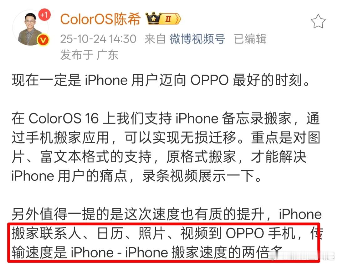 ColorOS16上支持iPhone备忘录无损搬家了,而且搬家到OPPO一加手机速度比iPhone之间搬还快,墙角挖完挖墙根了[笑而不语]