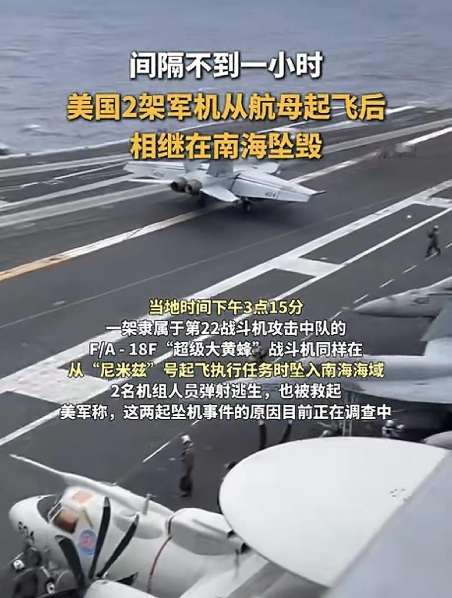 美国南海两架战机相继掉进海里,调查看来只有三哥背锅才是最合理,因为即便飞机老化,缺少维护,那是老美军方的问题,他们不背锅,至于被未知力量暗战了,老美也不会承认,现在只能从航电系统上找问题,而老美军工现在用了很多印度裔工程师,而印度又是摔飞机大国,现在的老美和他们简直一脉相承。