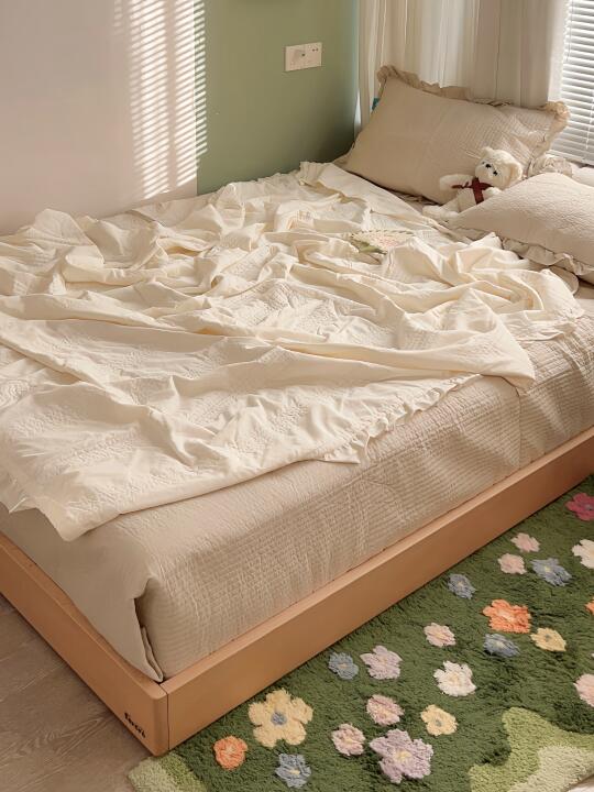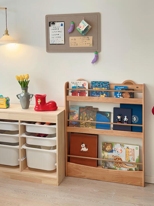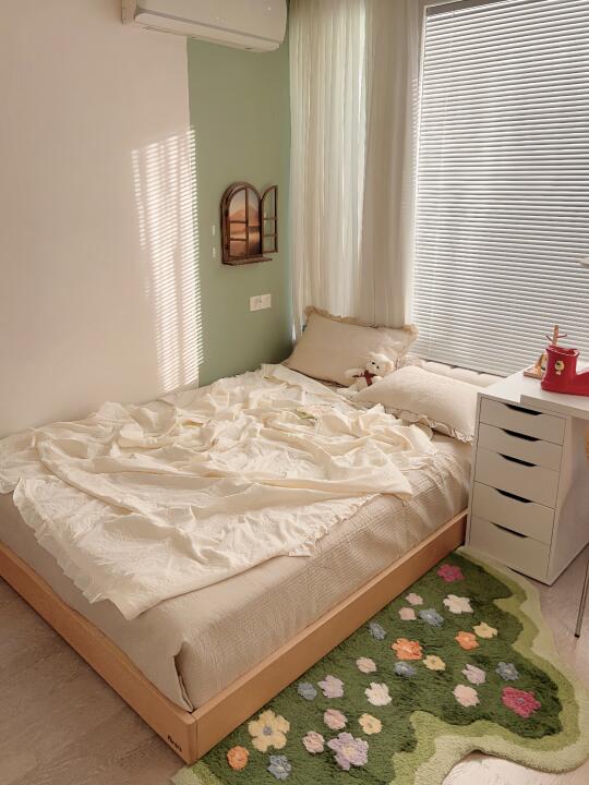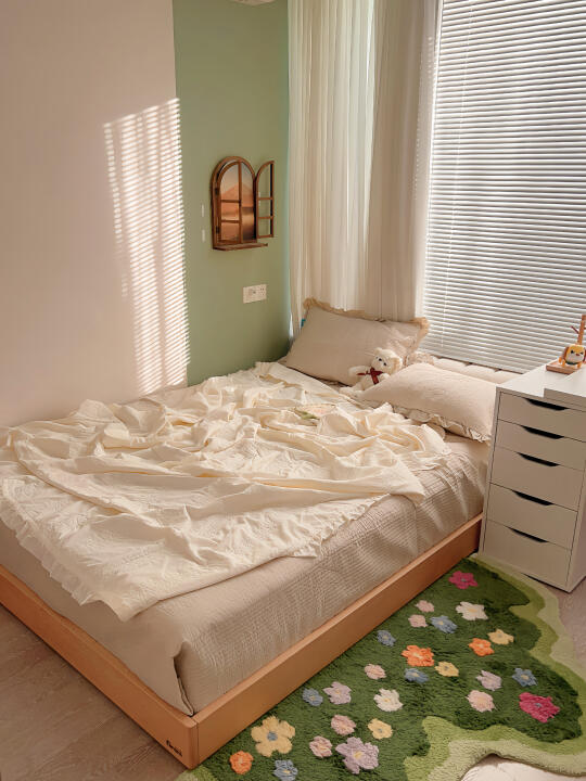为了防止宝宝掉落我特意安排的地台床,15cm高度方便爬上爬下,是宝宝超喜欢的的治愈系小天地