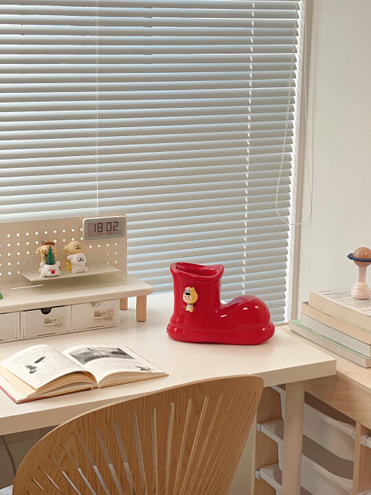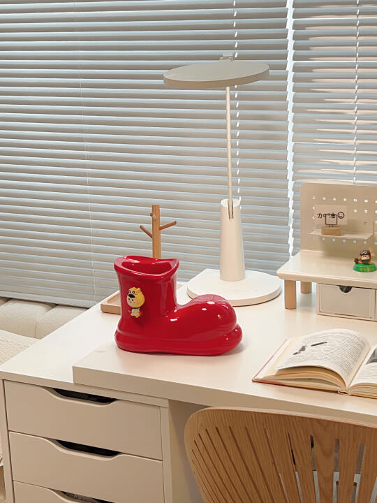 我偶尔也给他添置一些趣味小玩具,他近期的新宠是红靴子花盆摆件,磁吸表面还能贴一些可可爱爱的小玩意