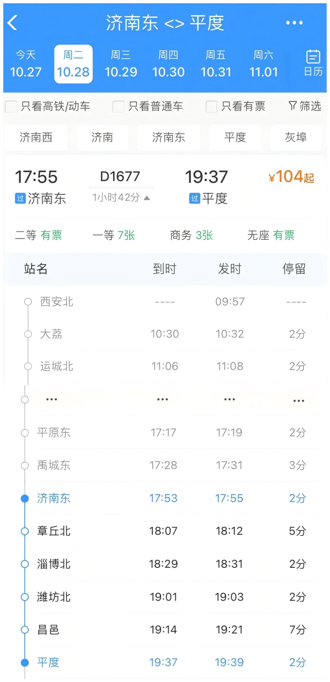自10月28日起,西安北至烟台D1677次列车经停潍莱高铁青岛平度站,该班次到达平度站时间为19:37,停车时间2分钟,可以为跨省市通勤、旅游探亲的乘客提供更多便利。