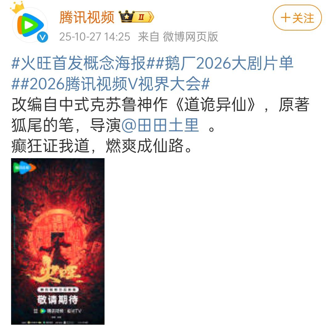 《道诡异仙》官宣导演,田里