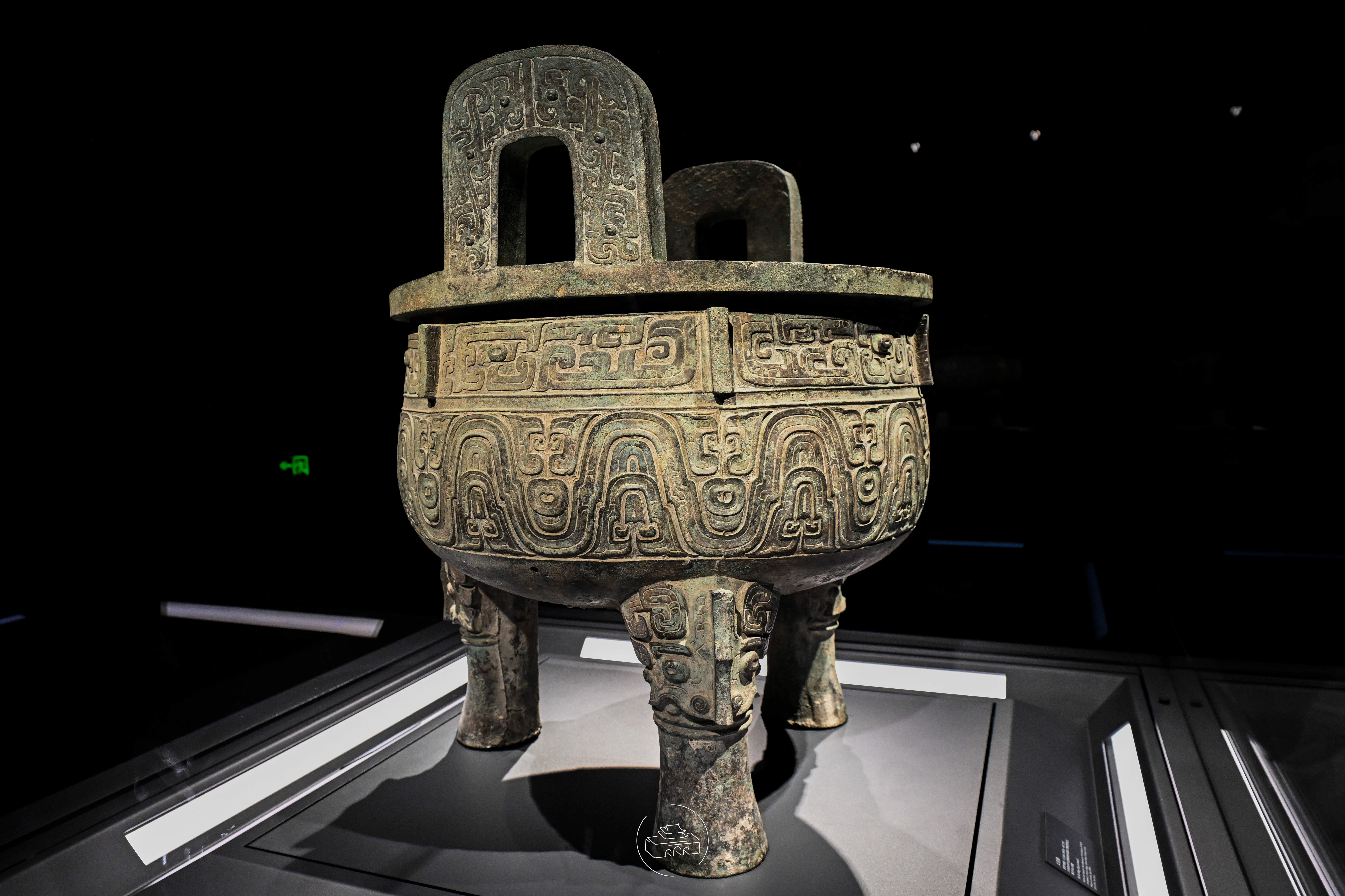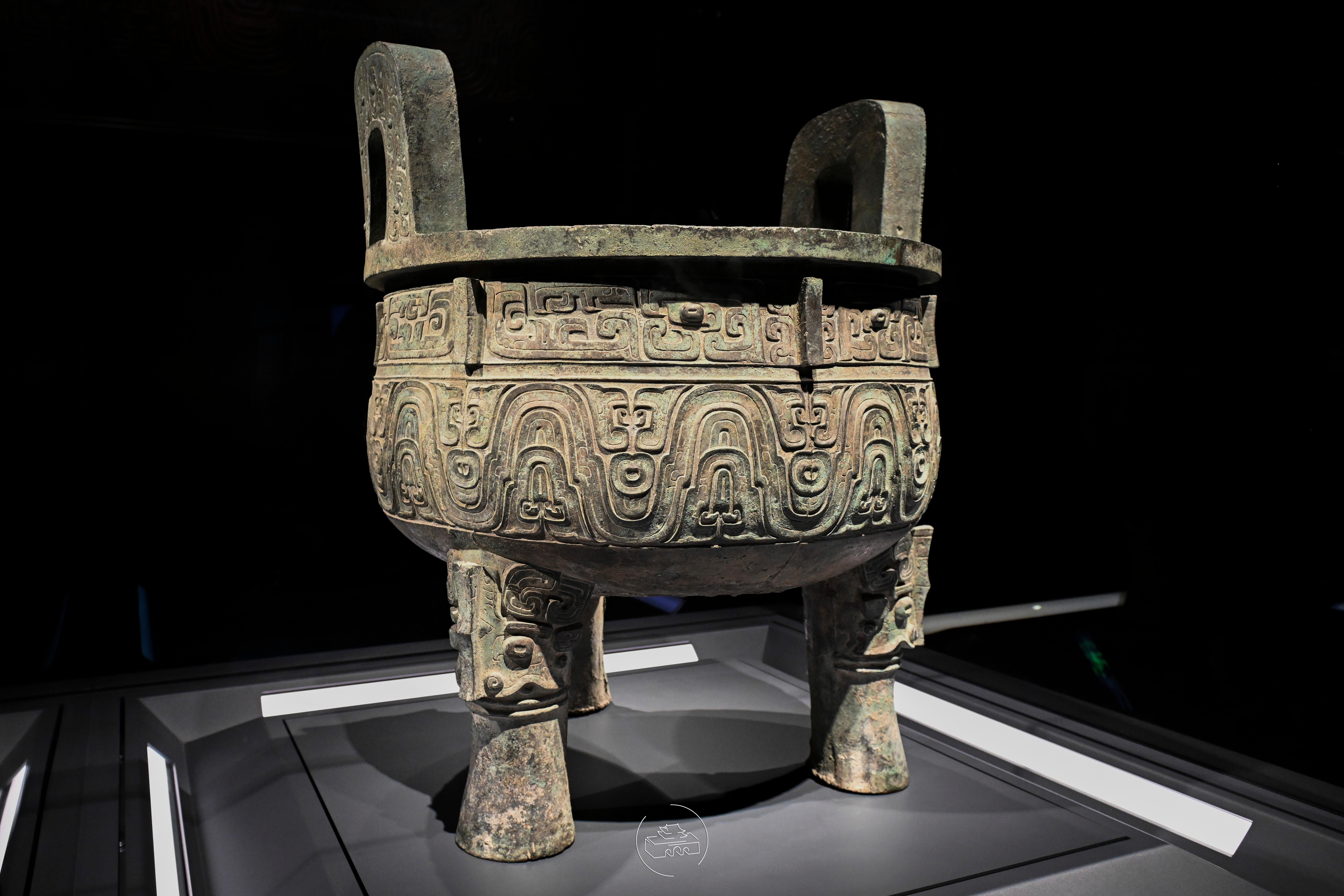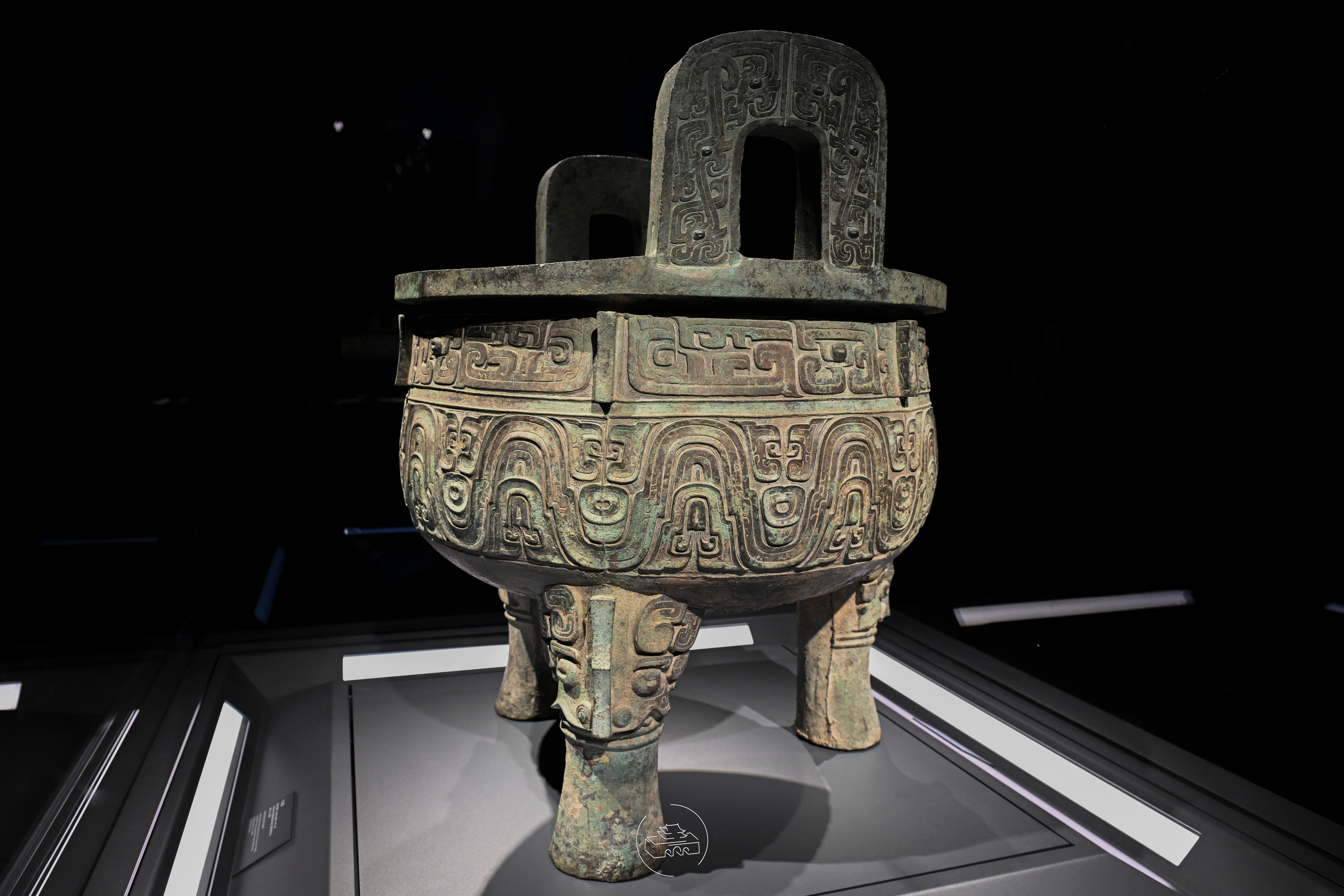 大克鼎又称膳夫克鼎,西周晚期(孝王)一名叫克的大贵族为祭祀祖父而铸造的青铜器,为国家首批禁止出国(境)展览文物。鼎腹内壁铸有铭文两段,共二百九十字,主要记录克凭先祖功绩,受周王的策命和大量赏赐的内容,是研究西周职官、礼仪、土地制度等都有极重大的意义。此鼎高93.1㎝,口径75.6㎝,重201.5㎏。鼎口双竖耳,底部三足,鼎身为三组对称的变体夔纹和宽阔的窃曲纹。